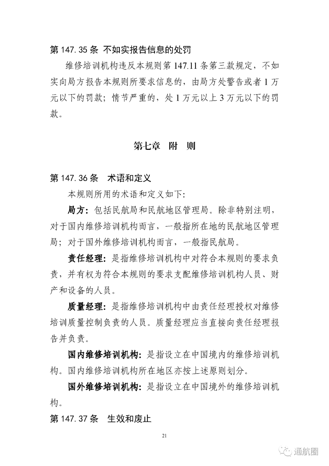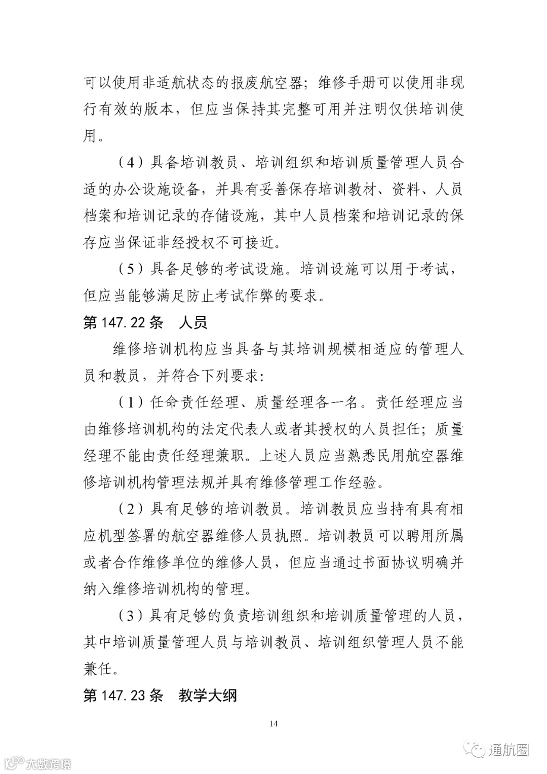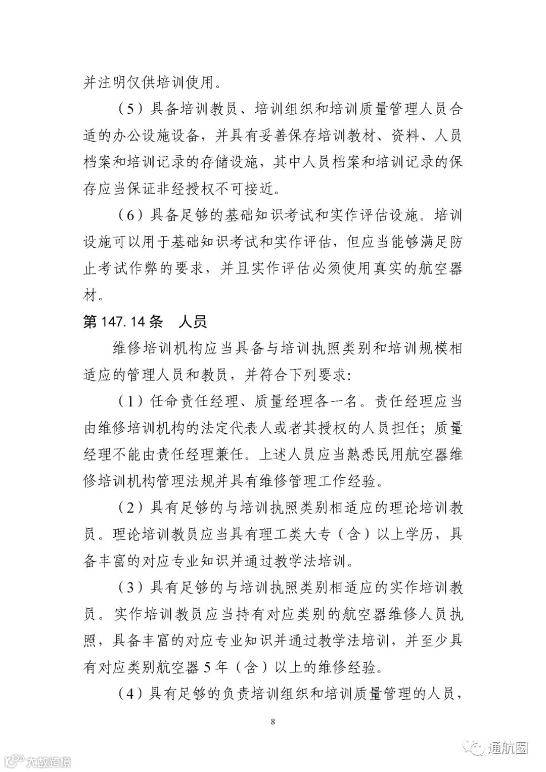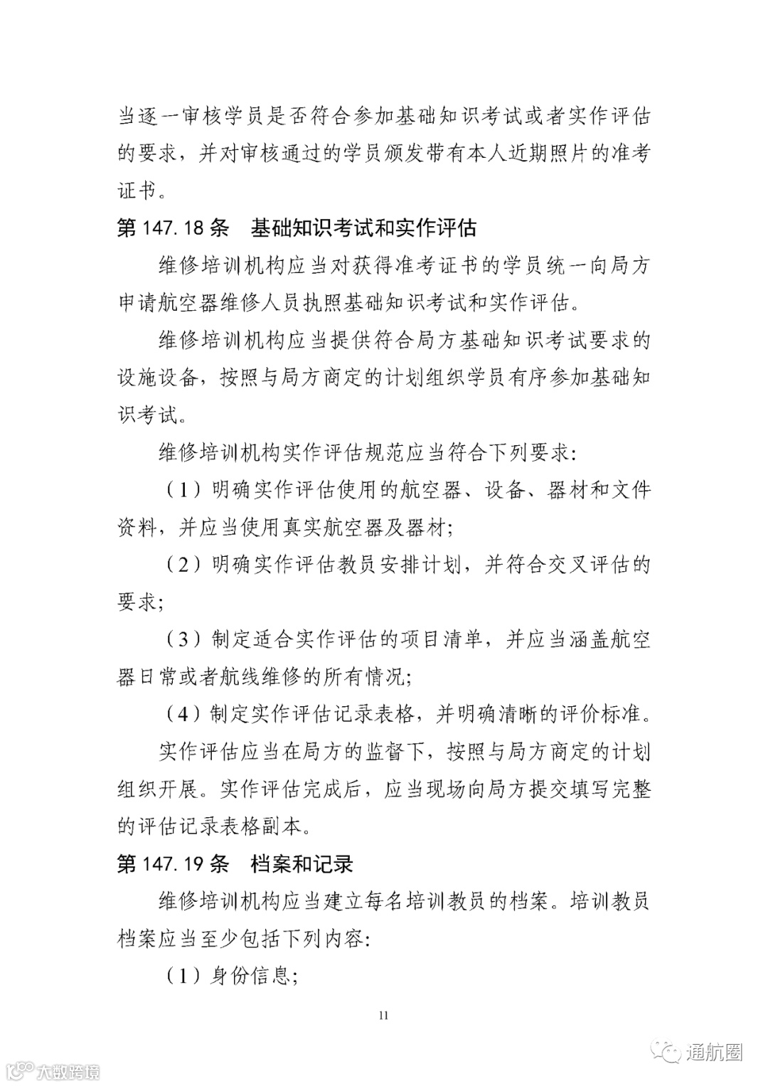 以下为新版147部《民用航空器维修培训机构合格审定规则》(中华人民共和国交通运输部令2022年第9号)的相关内容(新版145部请见今日另一篇文章):