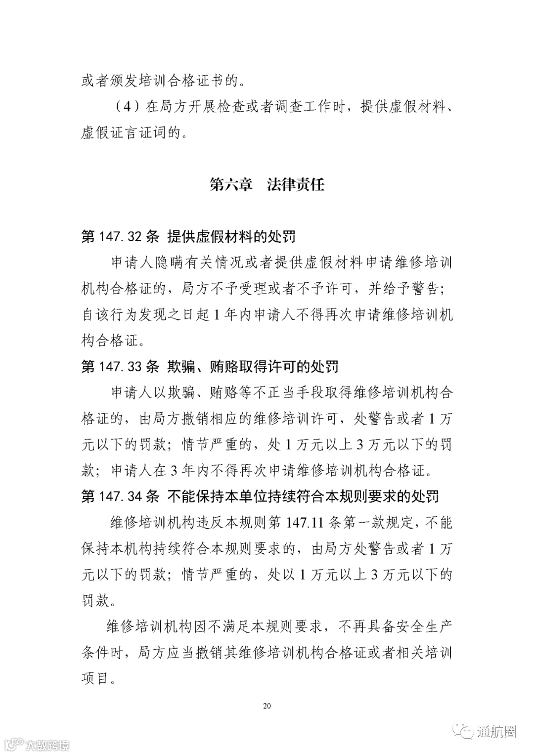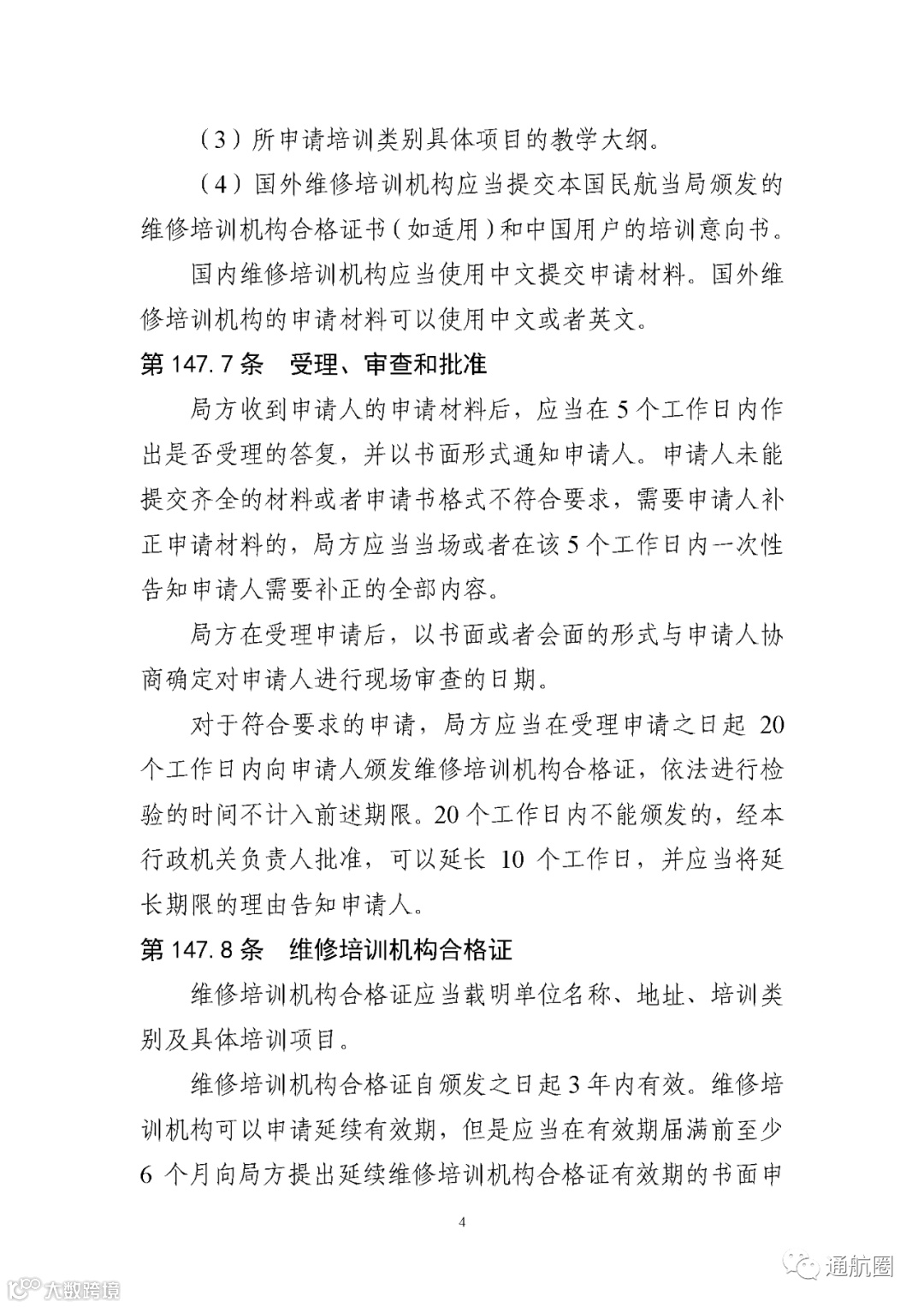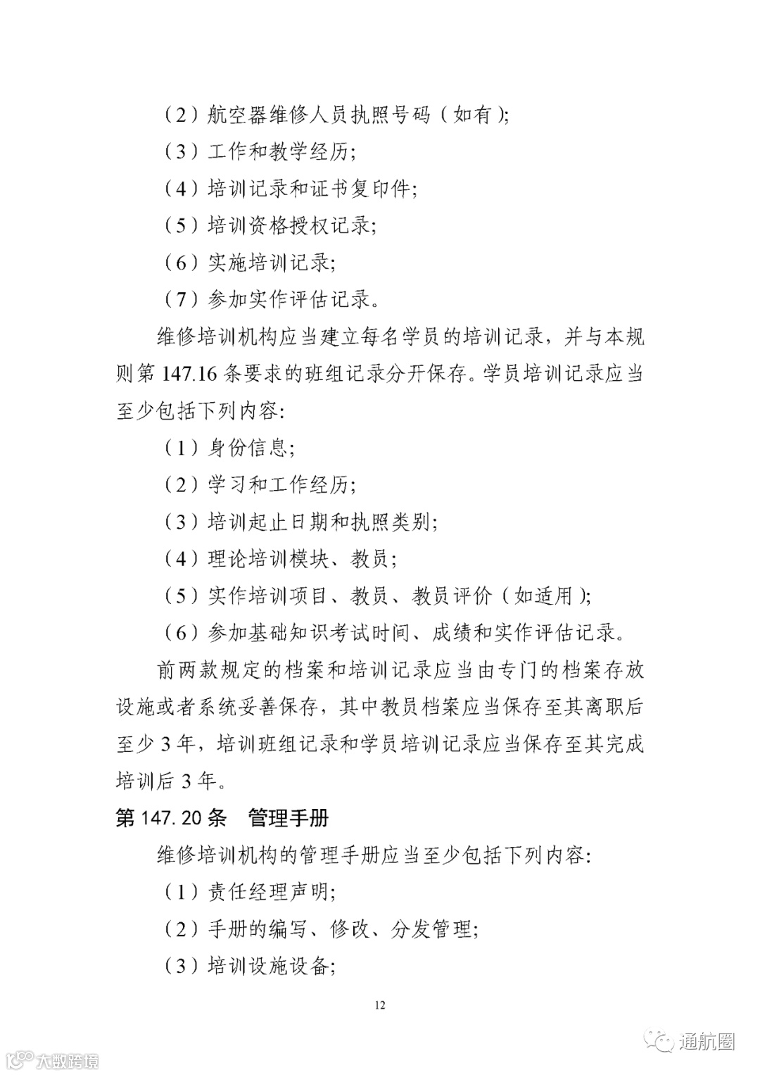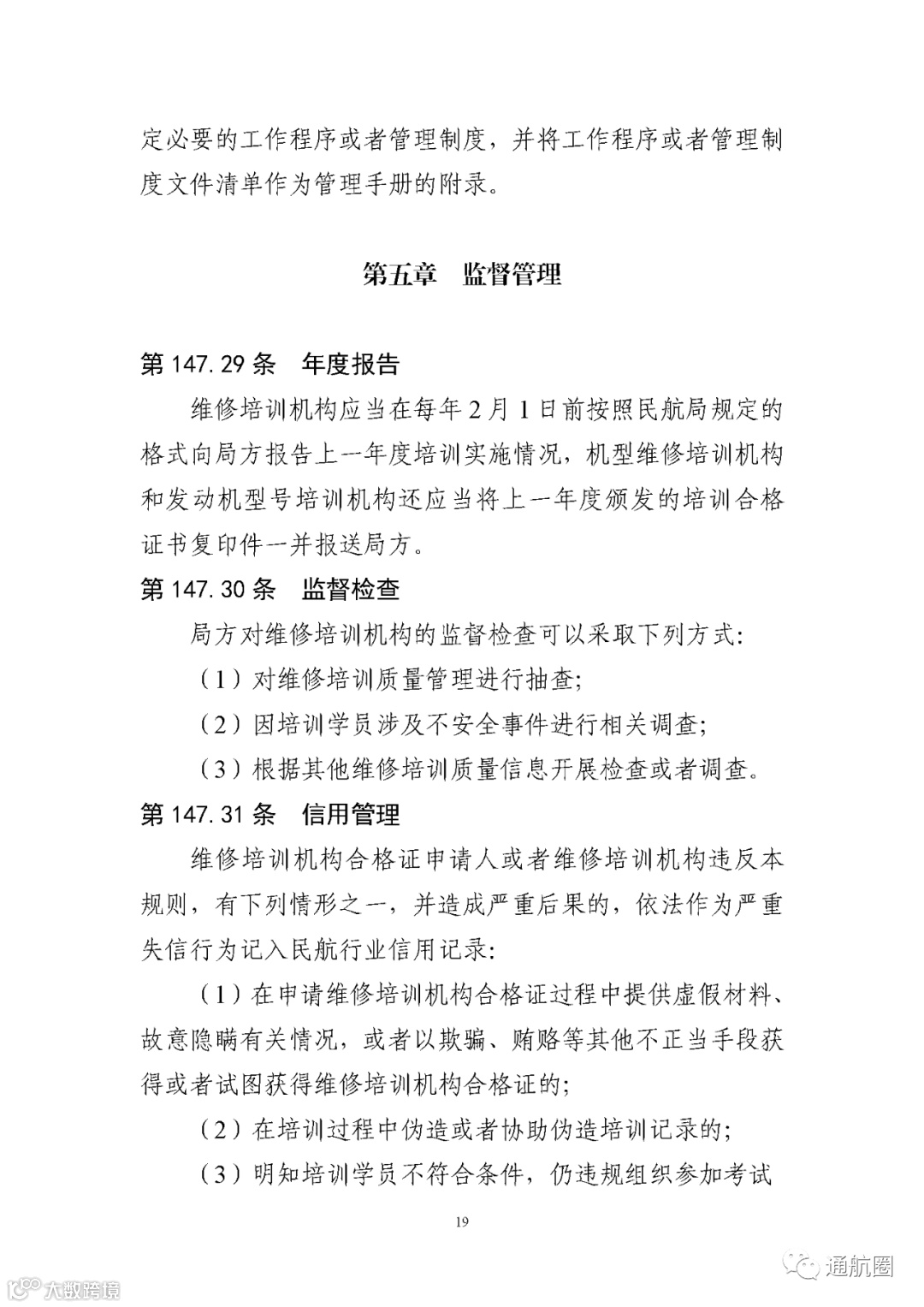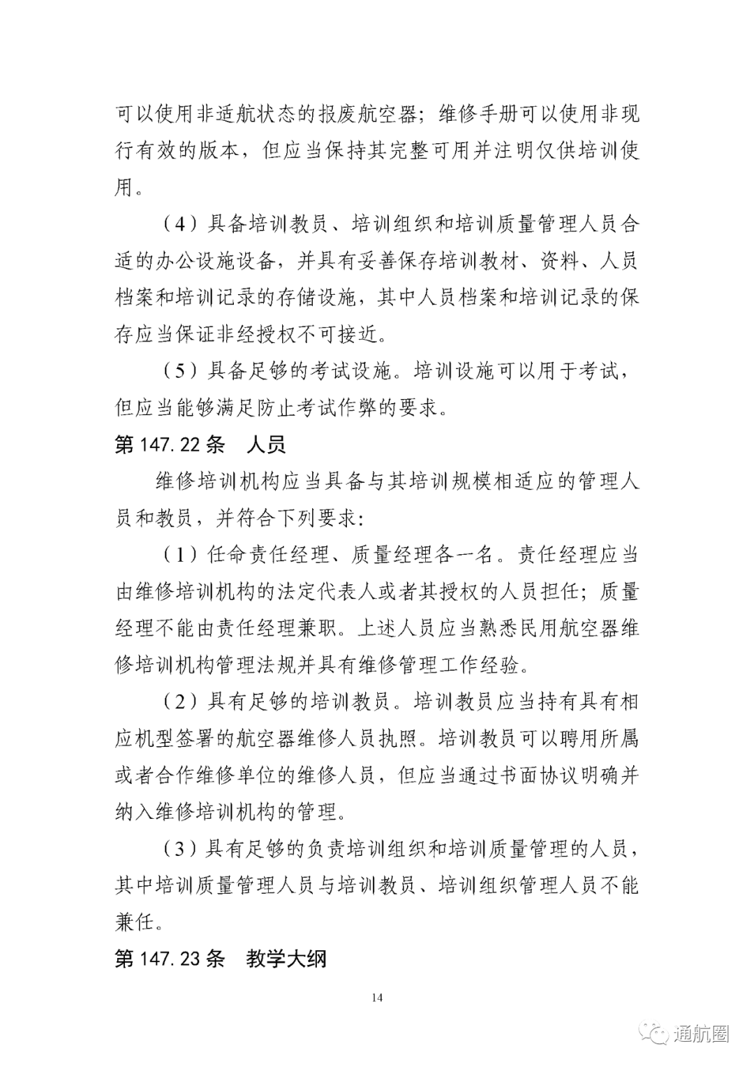 以下为新版147部《民用航空器维修培训机构合格审定规则》(中华人民共和国交通运输部令2022年第9号)的相关内容(新版145部请见今日另一篇文章):