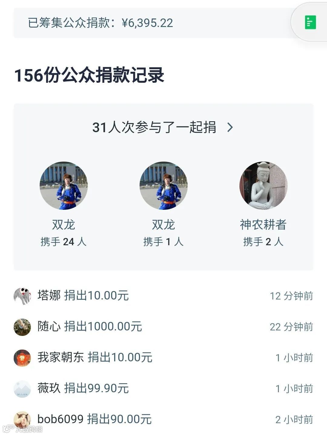 文章发出后收到很多爱心人士的支持和转发,在腾讯乐捐的项目上,一天时间就新增捐款近4000元,其中一位叫随心的爱心人士,还捐赠了1000元的大额捐款。