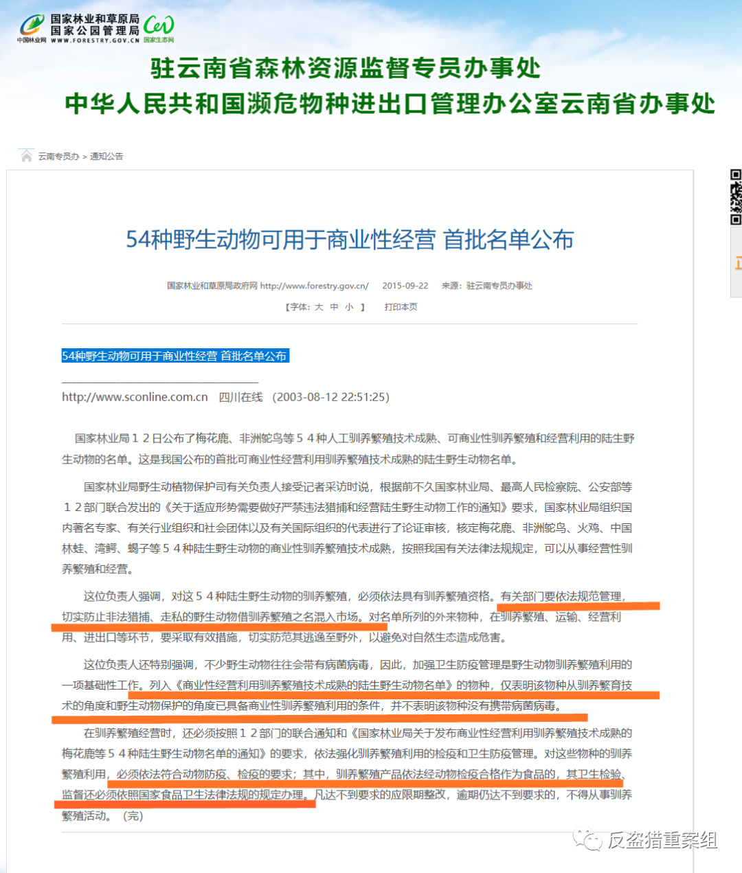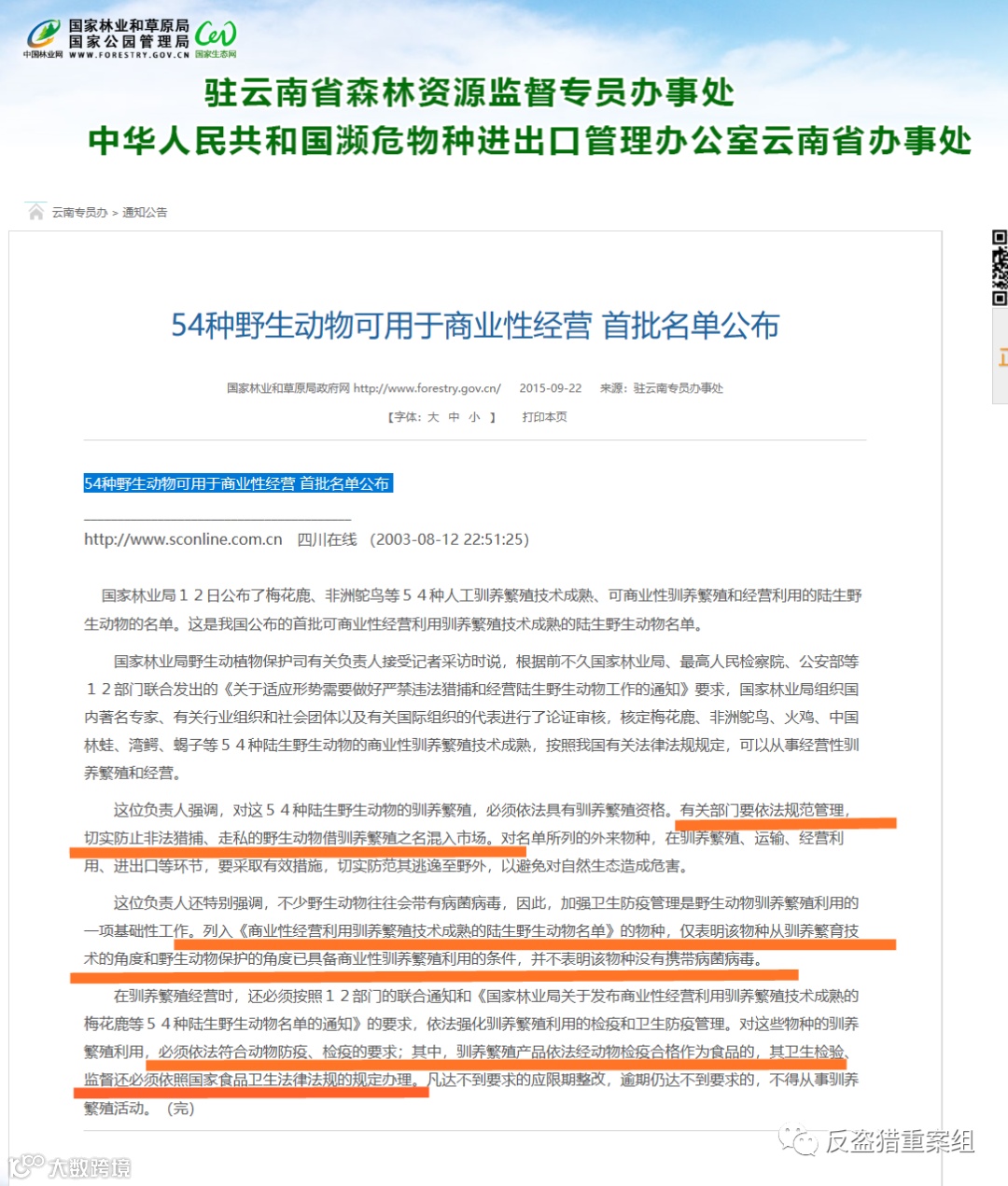 如今,把一些野生动物列入“特种畜禽”目录的打算,和当年那个“商业化驯养繁殖技术成熟”的名单,何其相似?!