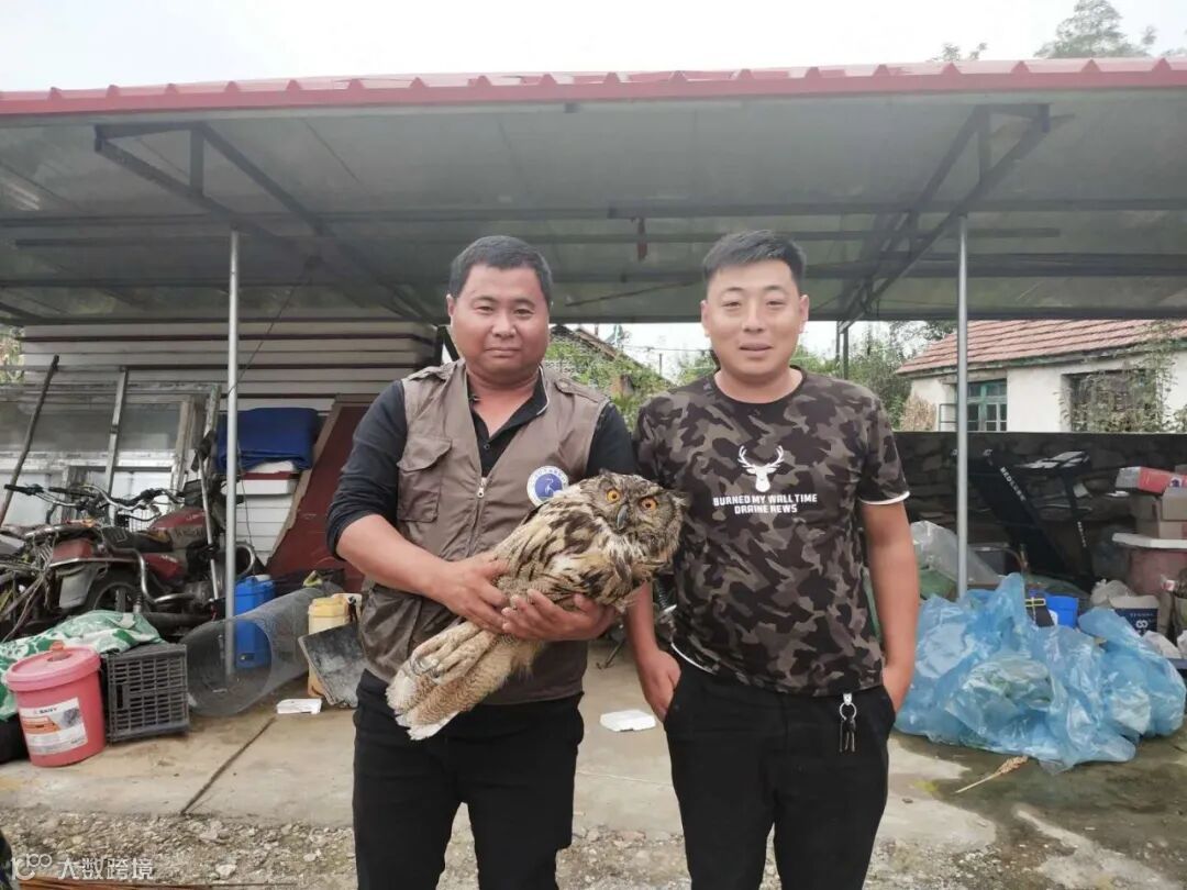 曹大宇和志愿者一起救助雕鸮