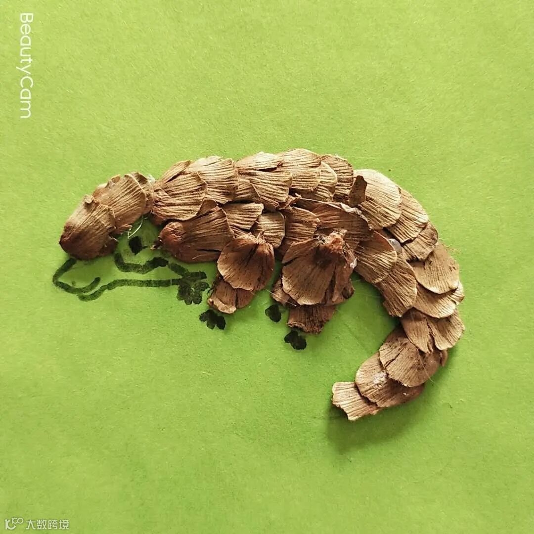 琪琪用巡护捡回来的松球做穿山甲手工,孙萍同时在他们幼儿园的群里做穿山甲保护宣传