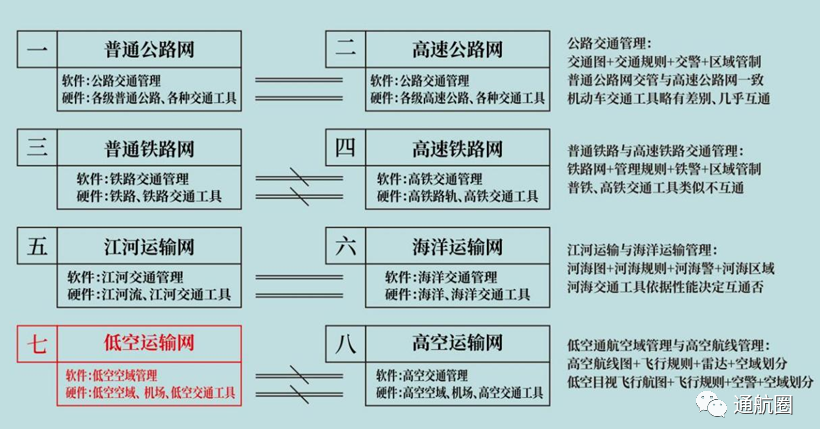 极客:总的来讲,“全面综合交通运输体系”是由八大交通运输体系构成,分别是:1普通公路网、2高速公路网、3普通铁路网、4高速铁路网、5江河运输网、6海洋运输网、7低空通航网、8高空运输网,这八个体系构成了各个国家的综合交通运输体系,其中普通公路网一直是人类最基础的交通运输网络支柱体系。