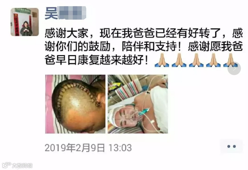 "东吴之崛起"丈母娘也在他出院那天突发脑梗成为植物人,他媳妇悉心照料母亲和丈夫一年多,在2019年冬天母亲去世。对于一个父母需要赡养和孩子需要上学的普通家庭来说是个非常沉重负担。目前家里唯一收入只有"东吴之崛起"媳妇平时挤时间做手工活,来维持日常开销。