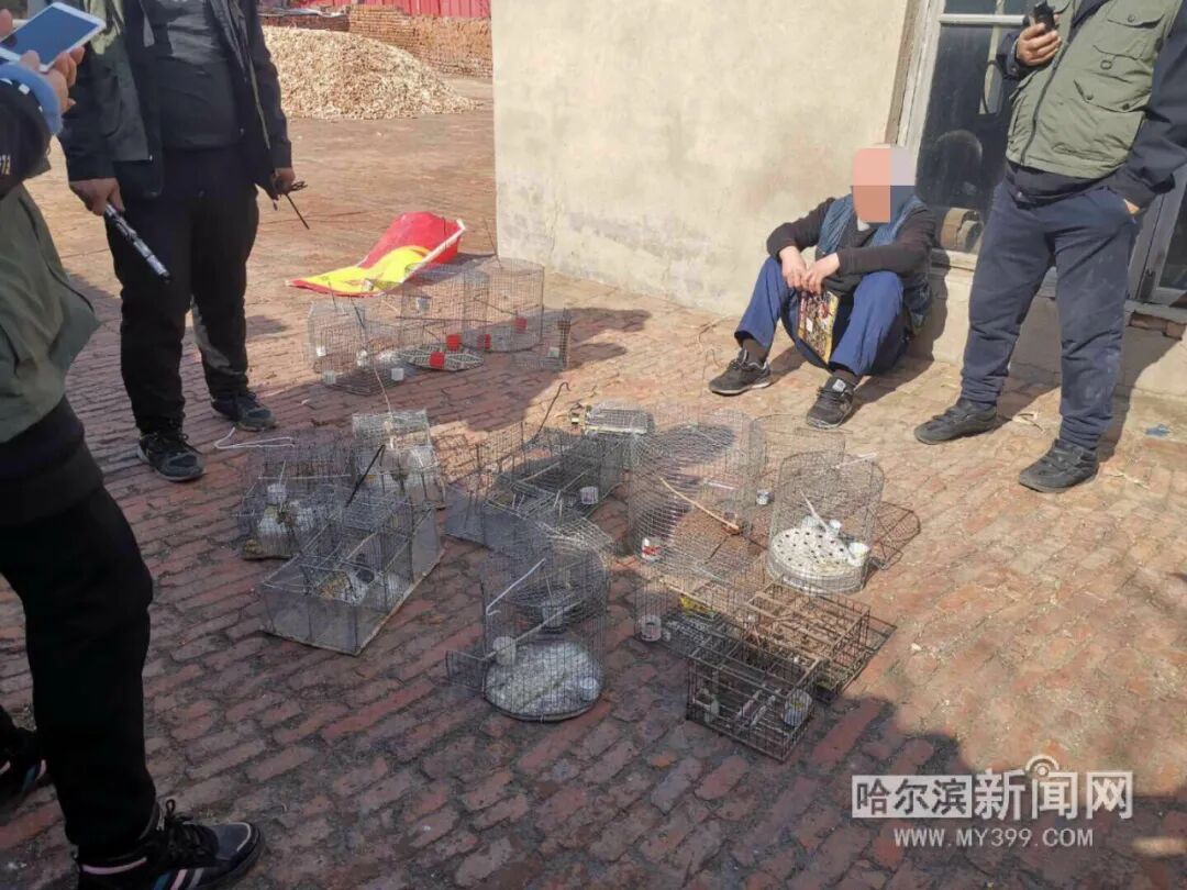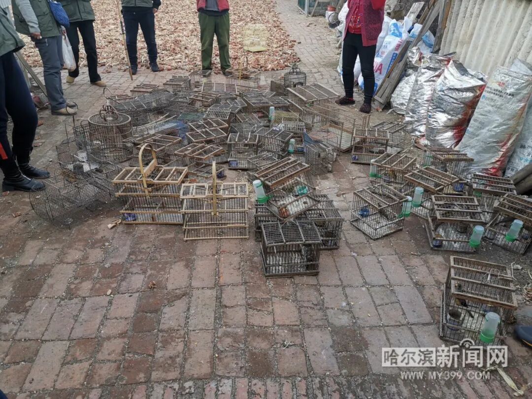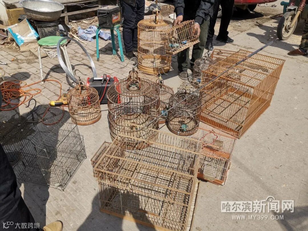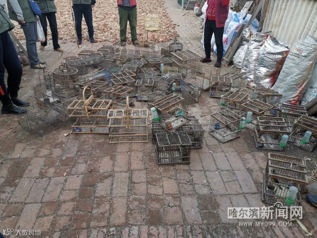 春季鸟类护飞首巡当天,野生动物保护志愿者22人,行程210多公里,巡护了双城区和道里区的20余个村屯,并在候鸟迁徙路线通道上着重注意发现和清除“障碍物”。在双城区民和村,发现一处捕鸟人自制的“扣网”2个,村民在普法宣传后同意放飞3只苏雀、2只黄雀,并将这2个“扣网”和15个拍笼、养笼全部当场销毁,该村民承诺以后不再捕鸟。在双城区民旺村,志愿者放飞野生鸟19只,销毁拍笼、养笼16个。一些养鸟人不仅主动配合放飞笼子里的鸟,还自己销毁鸟笼,表示不会再养野生鸟。