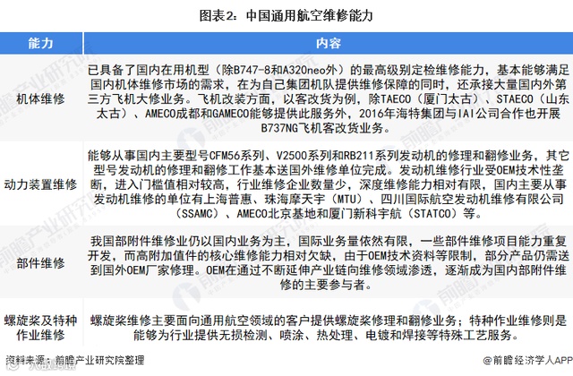 本文核心数据:民航维修市场规模、中国通用航空维修能力等