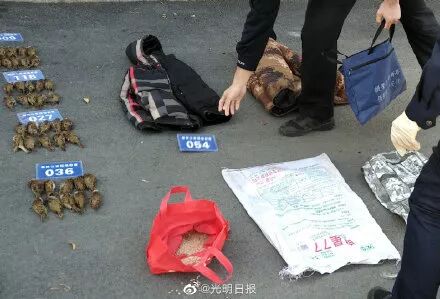 3、从十一假期开始,北京护鸟志愿者针对于大规模交易行为的调查举报得到丰台、昌平、朝阳等森警在内的多区执法的有力回应,接报反应很迅速现场执法很积极负责,在连续三周内查扣解救了在4个非法鸟市(大成路、分钟寺、大宁、半截塔)的待售鸟230余只,涉及鸟种有红喉歌鸲、蓝喉歌鸲、煤山雀、沼泽山雀、黄腹山雀、大山雀、红胁绣眼鸟、黄喉鹀、黄眉鹀、八哥、小鹀、普通朱雀、黑尾蜡嘴雀、黑头蜡嘴雀、三道眉柳莺、黄眉柳莺等近20种。