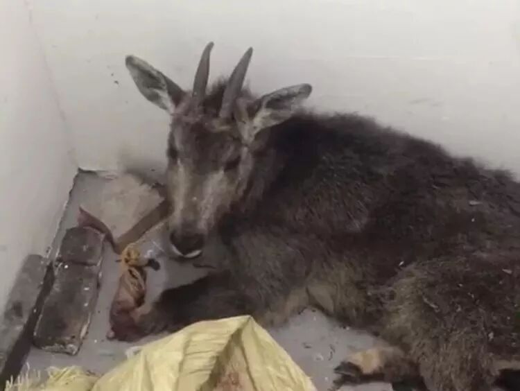 7月,志愿者在贵州黔南举报解救的国家二级保护动物中华斑羚