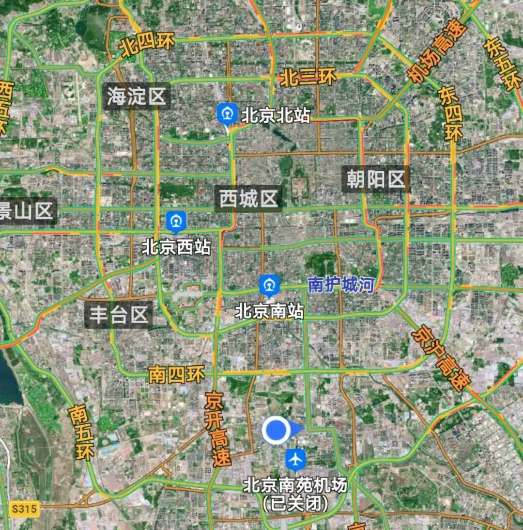 *图中蓝色白圈为南苑大泡子位置