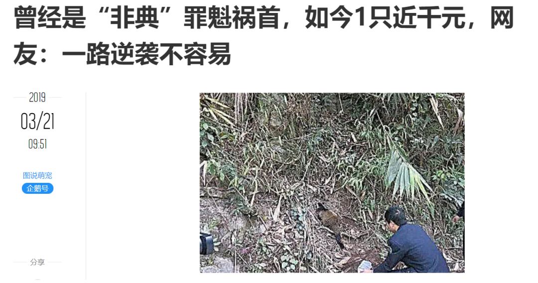 但现实可能并非如此,这篇关于果子狸的科普文章(蓝字即链接)提到,“在针对人工和野生果子狸的对比研究中发现,野生果子狸的遗传多样性,竟然比圈养条件下的同类还要低,这暗示了养殖场频繁从野外引种的事实。”