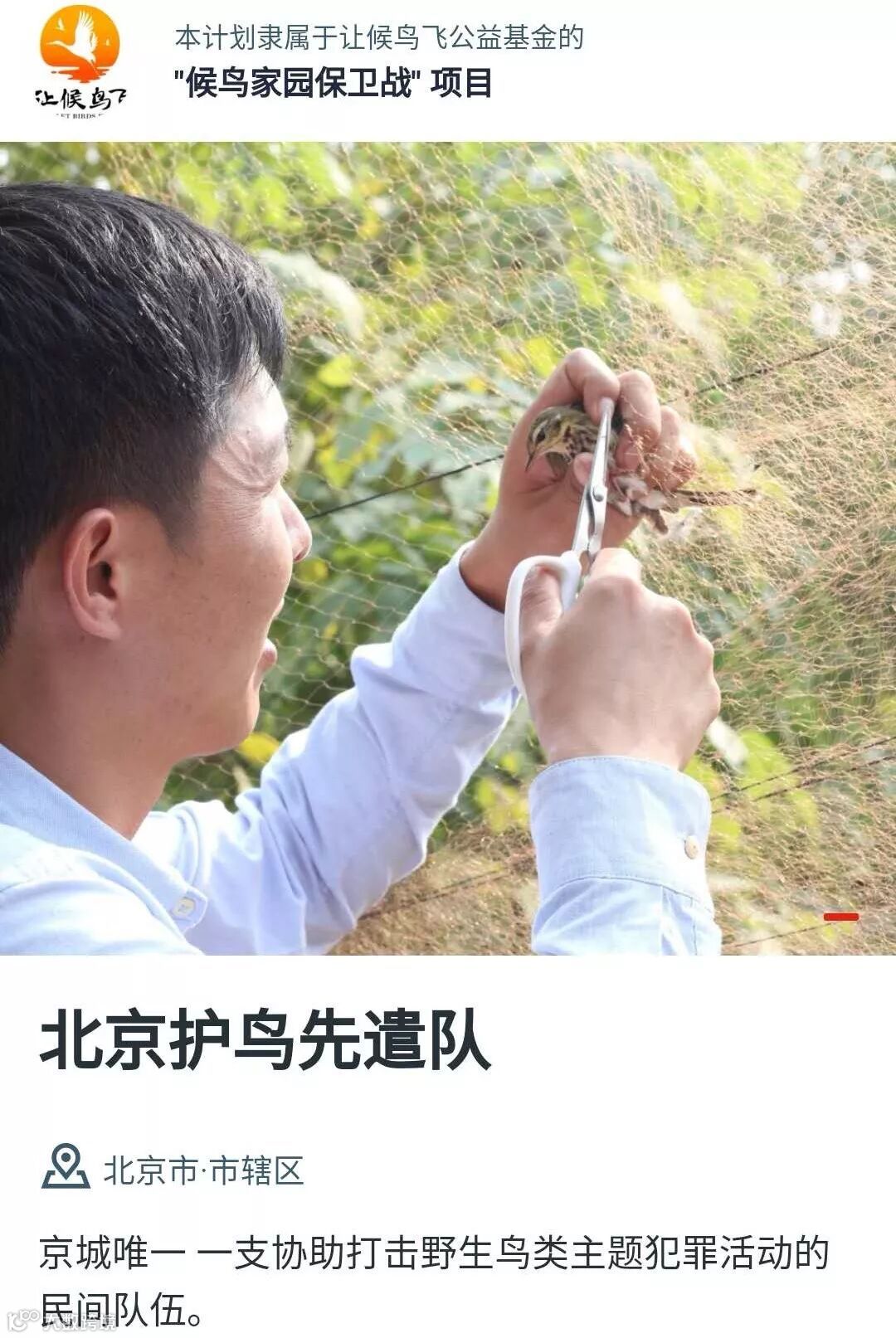 为了让更多人了解认识北京护鸟小队,在春节期间发布“北京护鸟2018下半年报”,打开链接了解:北京护鸟的2018下半年