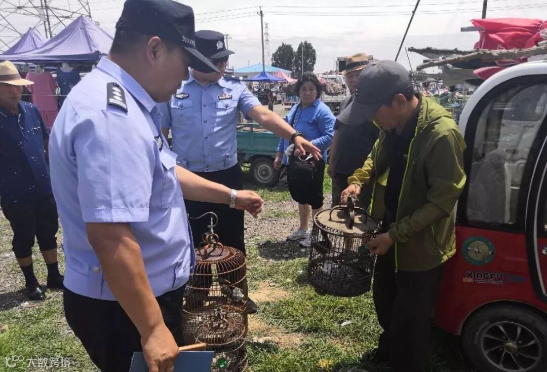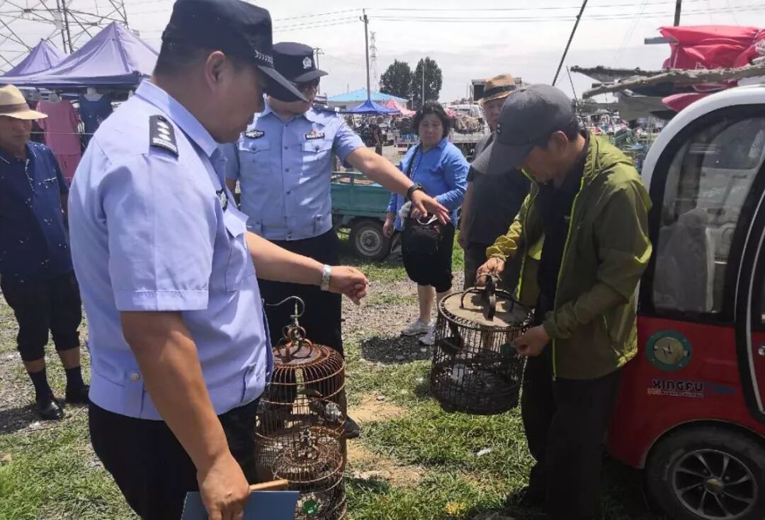 *顺义森林公安处民警接报后迅速出警处置现场违法贩卖野生鸟的相关行为。