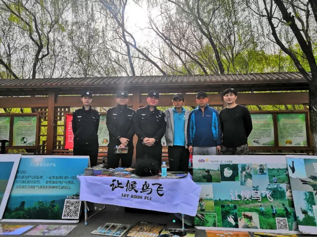 *朝阳区森林公安处多年来与让候鸟飞北京项目联合打击非法贸易和捕猎行动,在空档期也会一同开展普法宣传活动,一起努力向大众普及相关法律,倡导宣传爱护野生动物保护生态环境的意识理念。