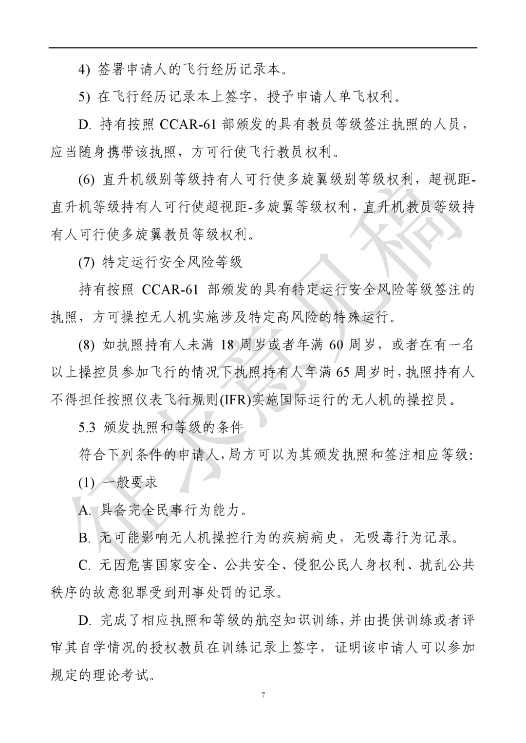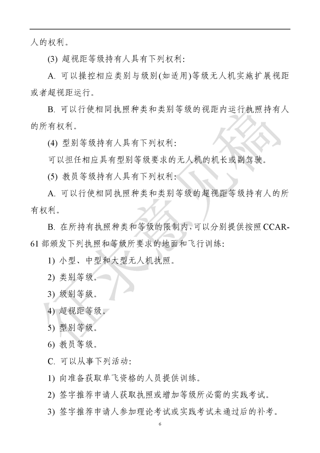 (6) 直升机级别等级持有人可行使多旋翼级别等级权利,超视距-直升机等级持有人可行使超视距-多旋翼等级权利,直升机教员等级持有人可行使多旋翼教员等级权利。