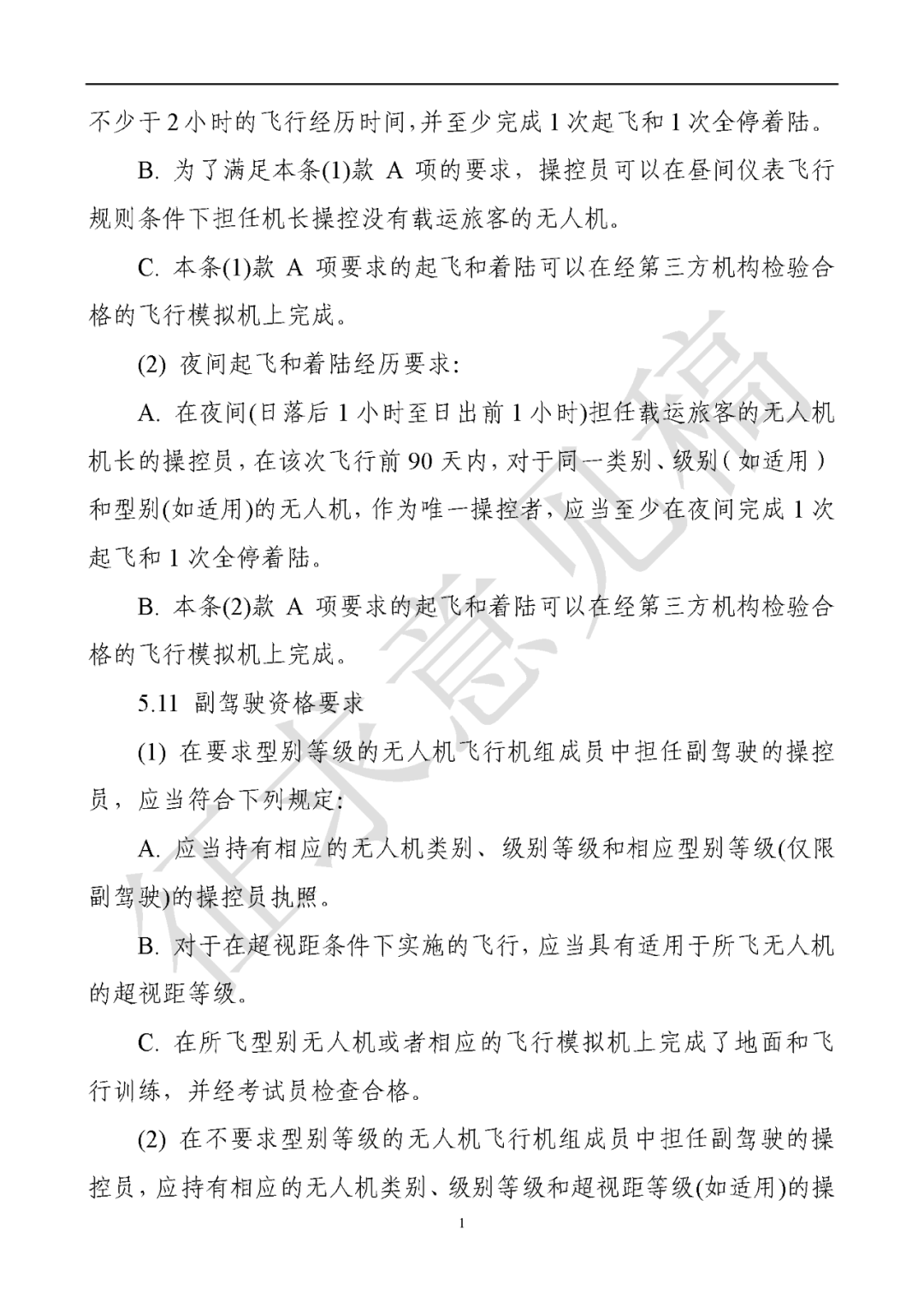 1) 审定最少机组为两名操控员操控的无人驾驶航空器。
