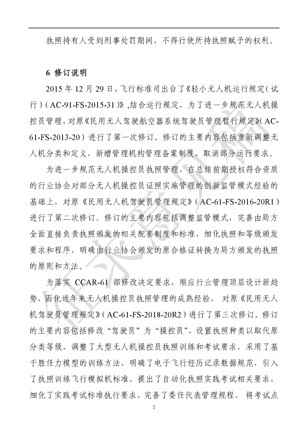 为进一步规范民用无人驾驶航空器操控员执照管理,在全面总结前期实践经验的基础上,飞行标准司修订了咨询通告《民用无人驾驶航空器操控员管理规定》。