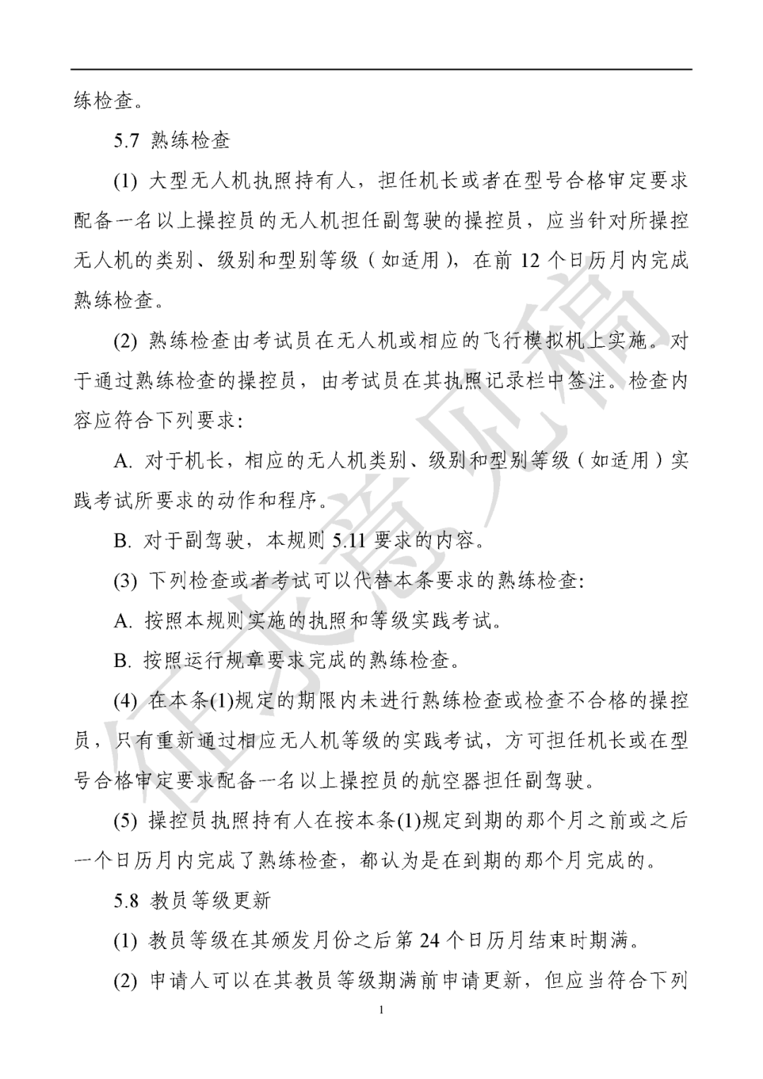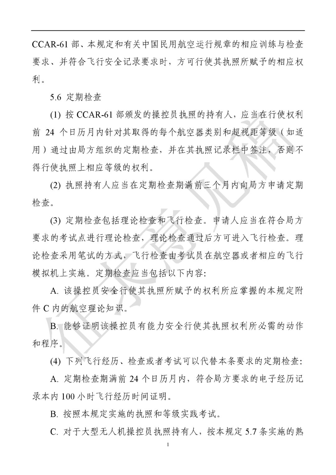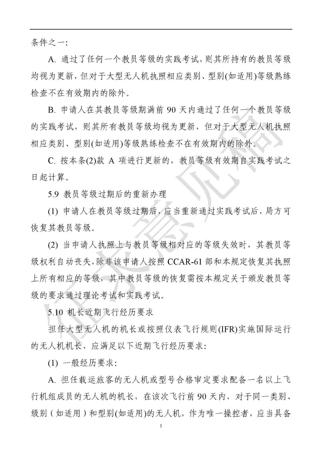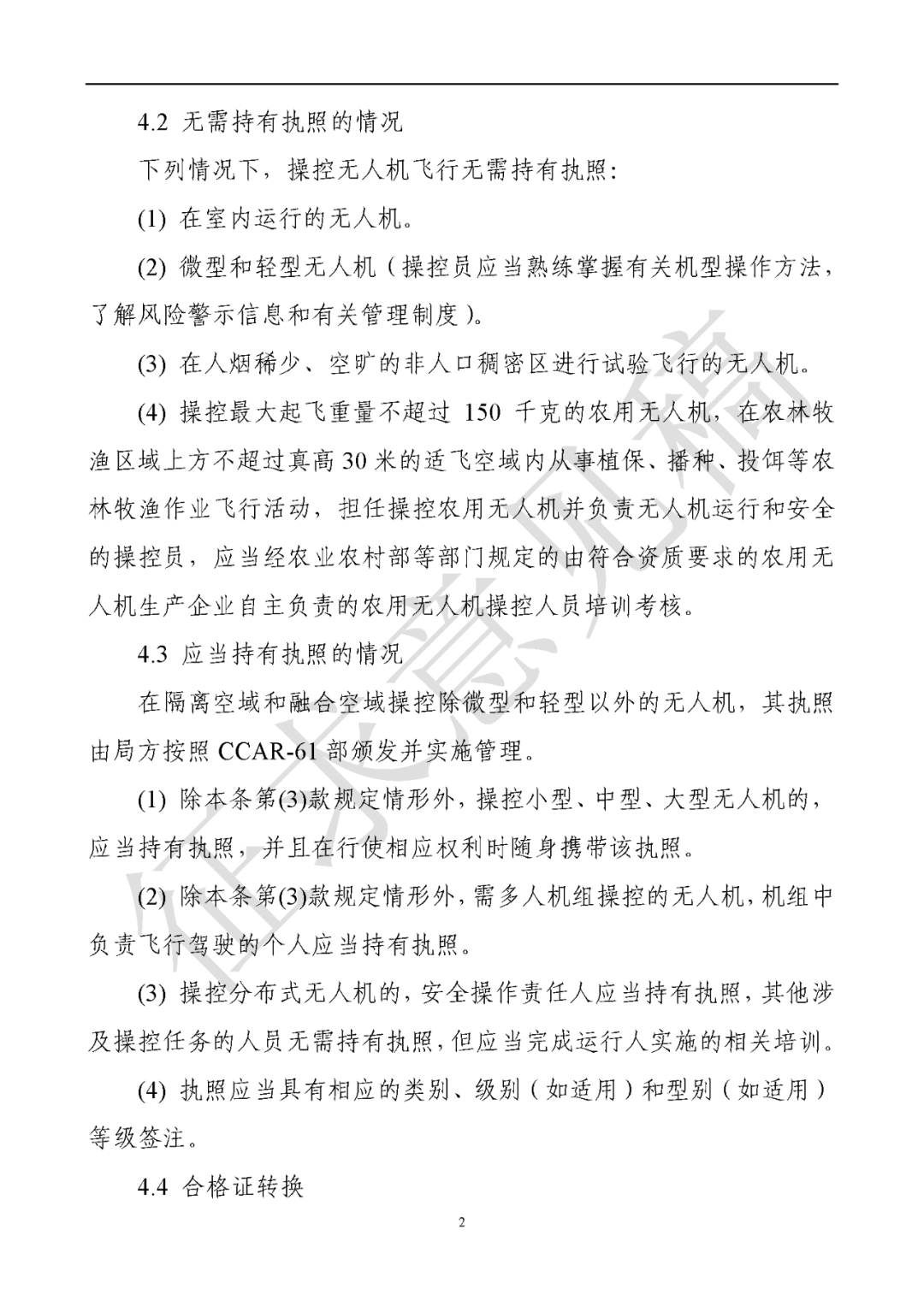 (1) 除本条第(3)款规定情形外,操控小型、中型、大型无人机的,应当持有执照,并且在行使相应权利时随身携带该执照。