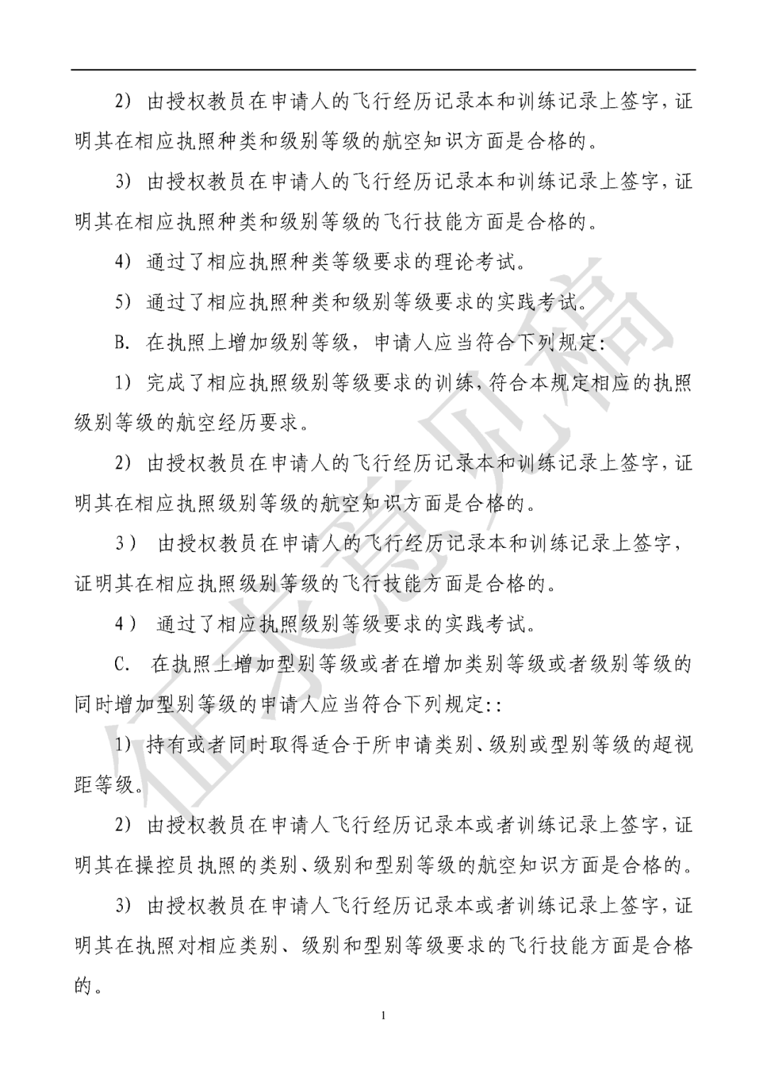 (4) 执照应当具有相应的类别、级别(如适用)和型别(如适用)等级签注。