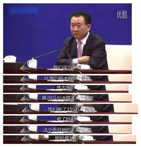 起因是这样的,万达学院开学典礼上,王健林说,我在当年总结会上讲过,我们这个事例,比海尔砸冰箱的那个事例伟大多了,砸20几台冰箱才几个钱啊,我们砸了350几个商铺,砸了6亿多,这个而且赔的不是6亿多,赔的是10亿多……
