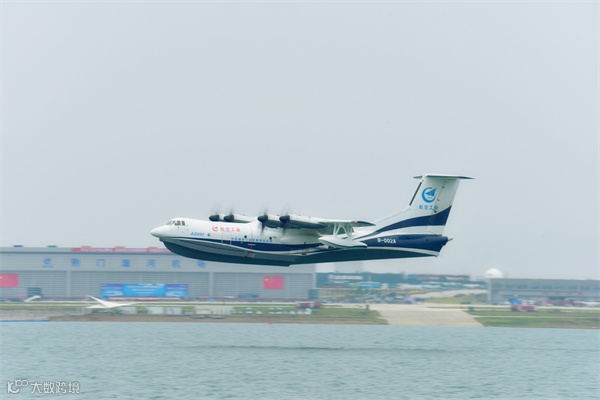 2018年10月20日8时45分,中国自主研制的大型灭火水上救援水陆两栖飞机——“鲲龙”AG600在湖北荆门漳河机场成功实现水上首飞 摄影 熊东东