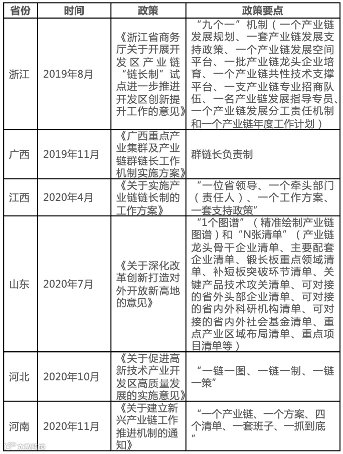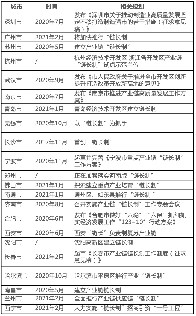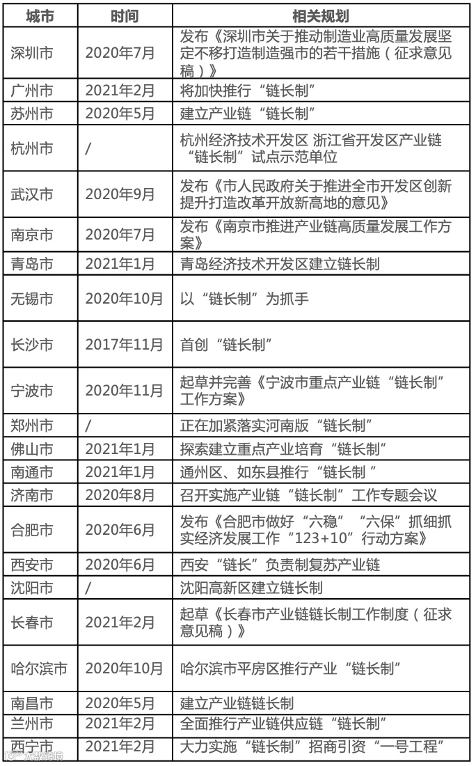 “链长制”正在成为地方产业经济政策热词,频频出现在地方产业链发展规划中。浙江、广西、江西、山东、河北、河南已相继发布政策,在全省范围实施产业链链长制工作方案;深圳、武汉、南京、宁波、合肥等城市也都在积极推进链长制方案实施进程。