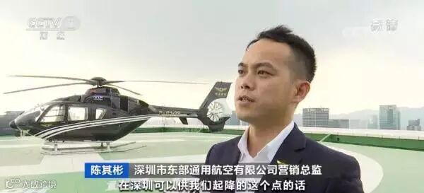 深圳市东部通用航空有限公司营销总监 陈其彬:在深圳可以供我们起降的点达到了60多个,目前从深圳可以实现除了香港澳门以外的大湾区其它城市之间的接驳。直升机的通勤效率,是我们地面车辆的6倍以上。