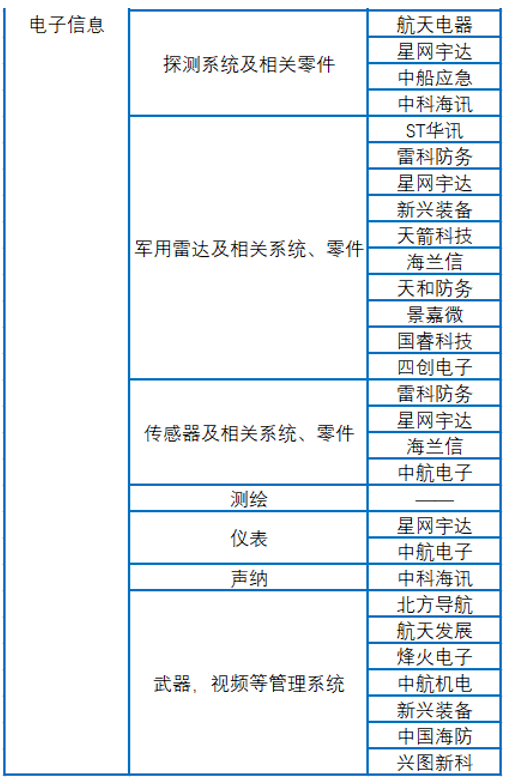 主要产品:军用导航,通信,探测,雷达,传感,测绘,仪表,声纳,以及其他软件服务等。
