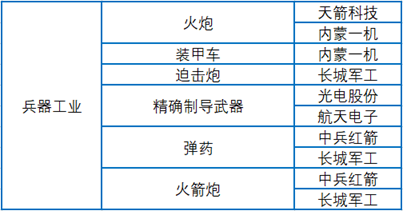 涉及到电子信息、冶金、化工、电力、机械、精密仪表等领域。主要产品:坦克装甲车辆、火炮、导弹、炮弹、枪弹、炸弹、航空炸弹、深水炸弹、引信、火工品、火炸药、推进剂、战斗部、火控指挥设备、单兵武器、夜视器材等。