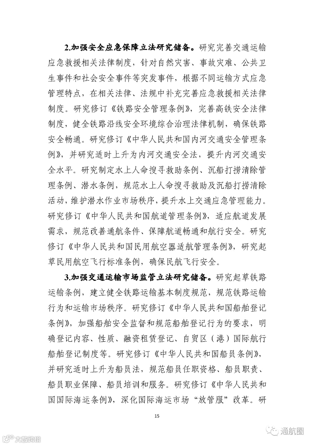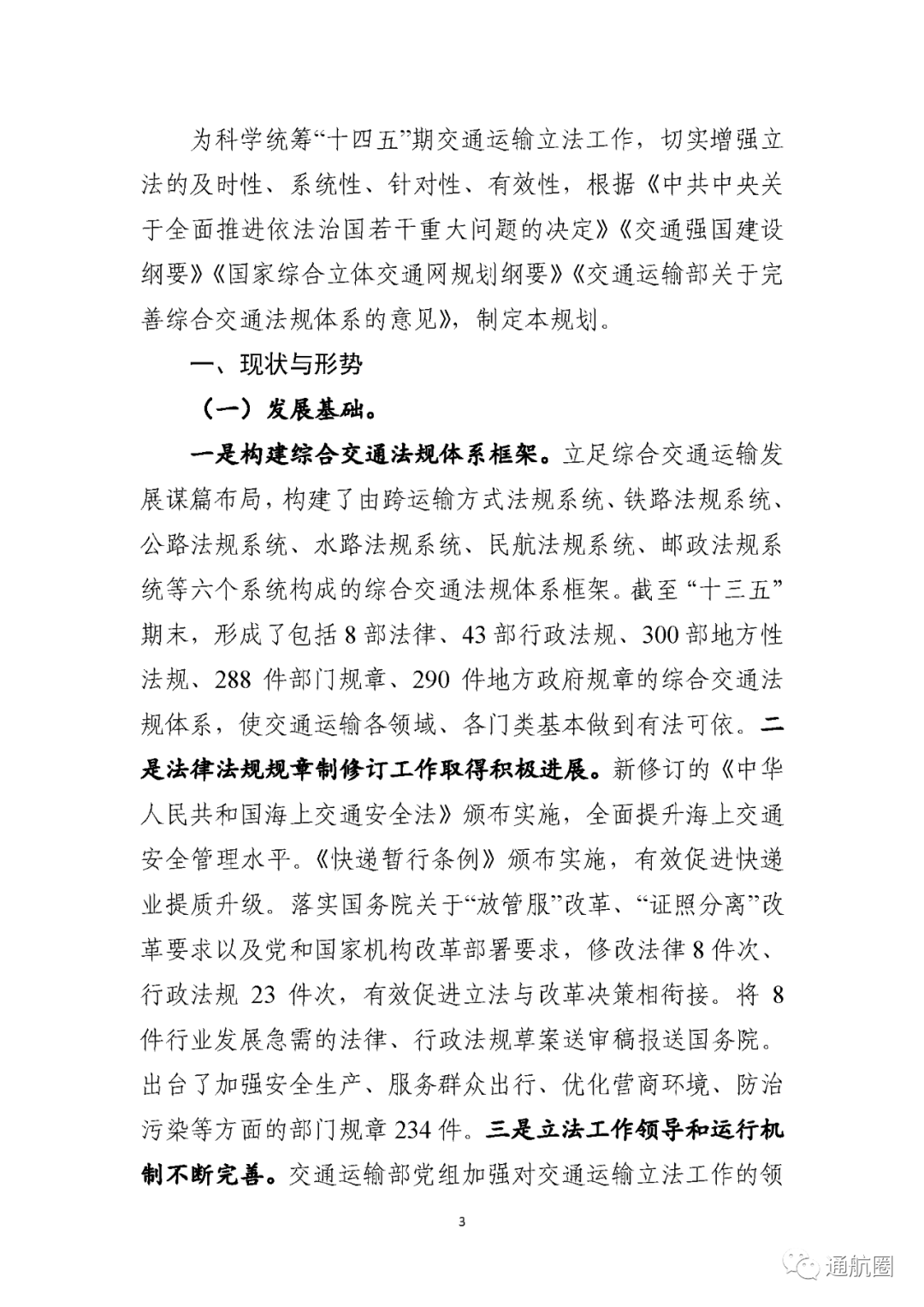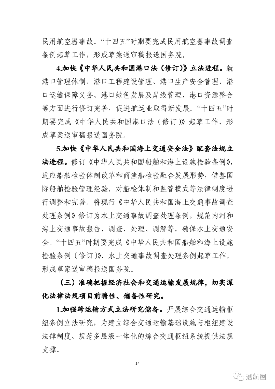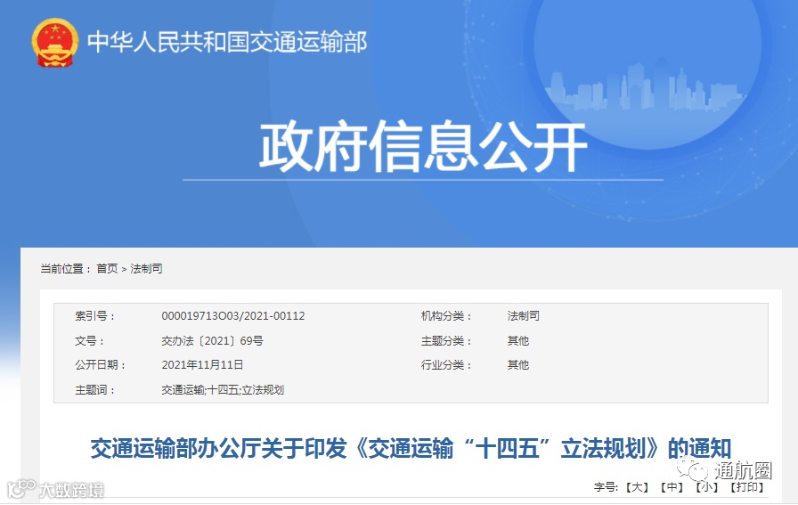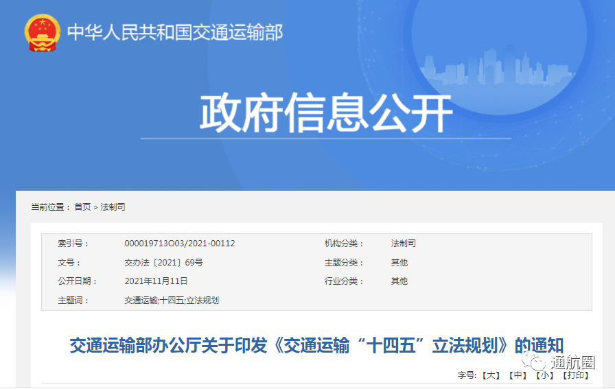 以下是《交通运输“十四五”立法规划》全文: