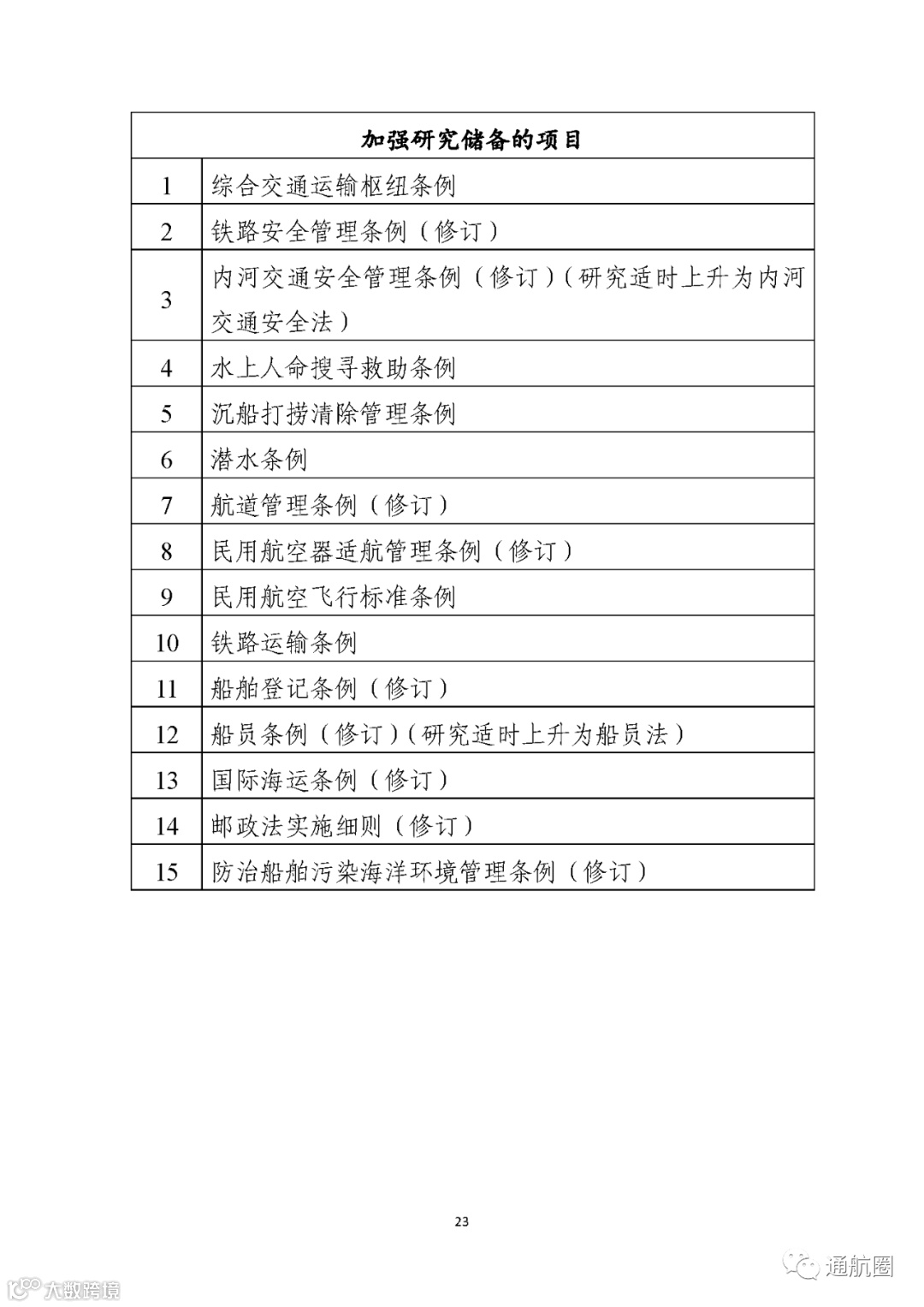 船员条例(修订)(研究适时上升为船员法) |