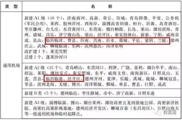 工作安排部分提出,“力争 在“十四五”期间 建成临沭、费县、平邑、 莒南 等6个通用机场,持续优化通用航空布局。”