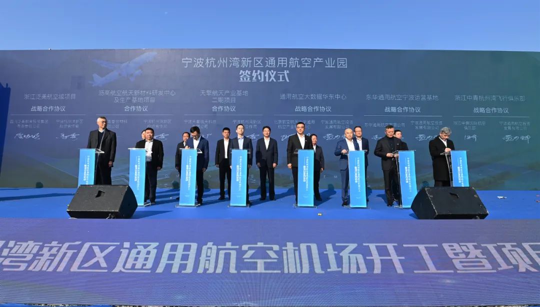 11月26日上午,宁波杭州湾新区通用航空机场开工,6个产业及运营项目同时签约,总投资123.53亿元。宁波杭州湾新区管委会主任、党工委书记杨勇宣布开工,宁波前湾新区指挥部副总指挥李森苗出席,新区管委会副主任袁朝晖主持,新区党工委、管委会领导史建范、蔡世杰、林利挺、周前程参加。