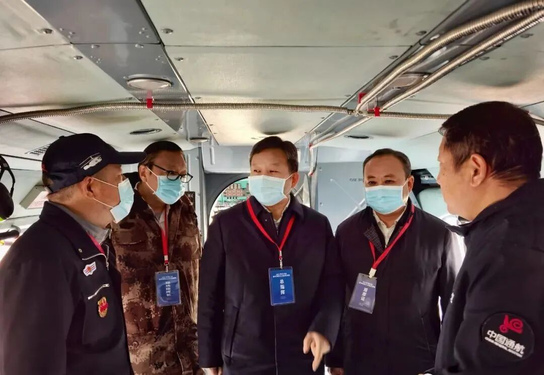 曹立军副省长、刘坪州委书记、罗振华州长等领导在机舱内观摩