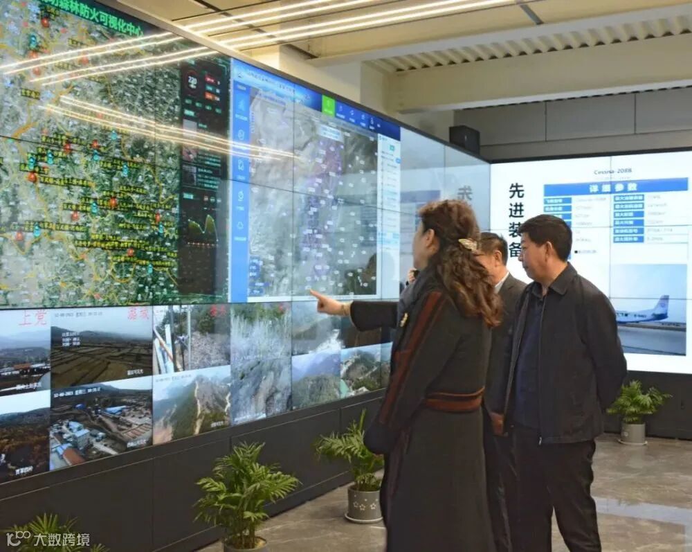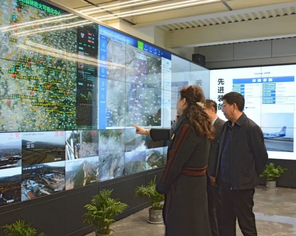 座谈结束后,一行人共同参观了成功通航应急联动指挥中心。通过现场演示成功通航森林防火信息平台,进一步了解了成功通航近年来取得的新发展。