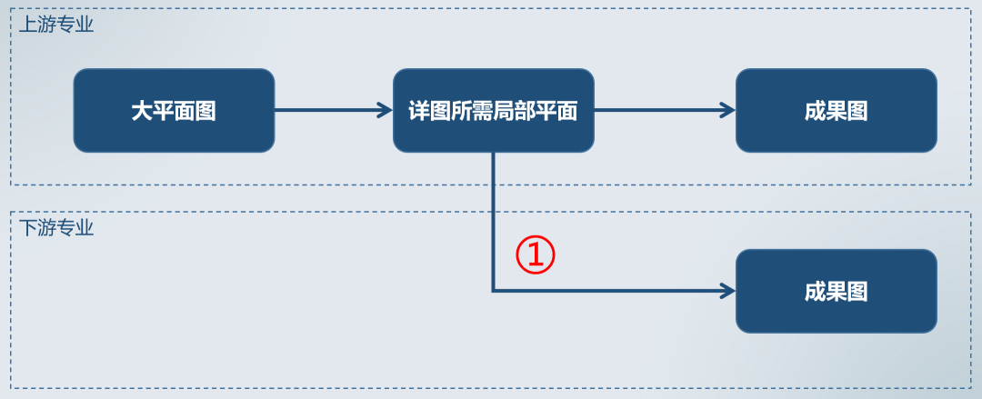大部分企业在推行二维协同设计时,都是分步推行,起始阶段均是从平面开始。随着平面推行已经足够熟练,就会思考进一步扩展协同范围。那么,平面协同之后应该是先总图还是先详图呢?可以根据团队的需求确定。相比之下,详图协同辐射的范围会大一下,有着明显的提资需求,如果没有详图协同,提资模块是不完整的;总图协同有深浅之分(除了专业内可以有很多模块以外,还可以跟地下室及地上单体产生关系。),如果仅是解决总图提资底图的需求,跟平面协同逻辑没有任何区别,可以帅先执行,毕竟没有这块,提资模块也不完整。详图协同要复杂一点,比如:平面类详图,其底图来自大平面图,自己需要先处理一道,然后再解决提资问题。
