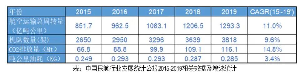 中国市场上,2015-2019年中国民用航空局发布的《民航行业发展统计公报》显示,在新冠疫情暴发前,中国民航机队规模以年均近290架的规模净增长,年均增速为9.6%,同期总运输周转量以年均11.0%的速度增长,但按照每千克航空燃油产生3.15千克二氧化碳的比例计算,同期中国民航运输业二氧化塘总排放量年均增幅为14.8%,吨公里油耗呈现了年均3.4%的增长(如果逐年看,2016年比2015年的吨公里油耗出现了一次高达17.7%的异常增长),显示中国民航的减碳任务还是依然面对巨大压力。尤其是2020年疫情特殊年份下,尽管增幅下调但是民航机队仍然在增长(年末达到3903架),但航空运输总周转量相比于2019年水平巨幅下跌39%。在这个特殊年份下,虽然中国民航二氧化碳的总排放量随着总周转量的下挫有显著回调,但从燃油效率维度看,中国民航的吨公里油耗上升至0.316Kg,比2019年水平跳涨近11%。其原因大概率与2020年飞机平均航段缩短(因为全年国际航班量下挫近90%之多)进而燃油效率下降有关,更是为效率维度的减碳带来巨大压力。