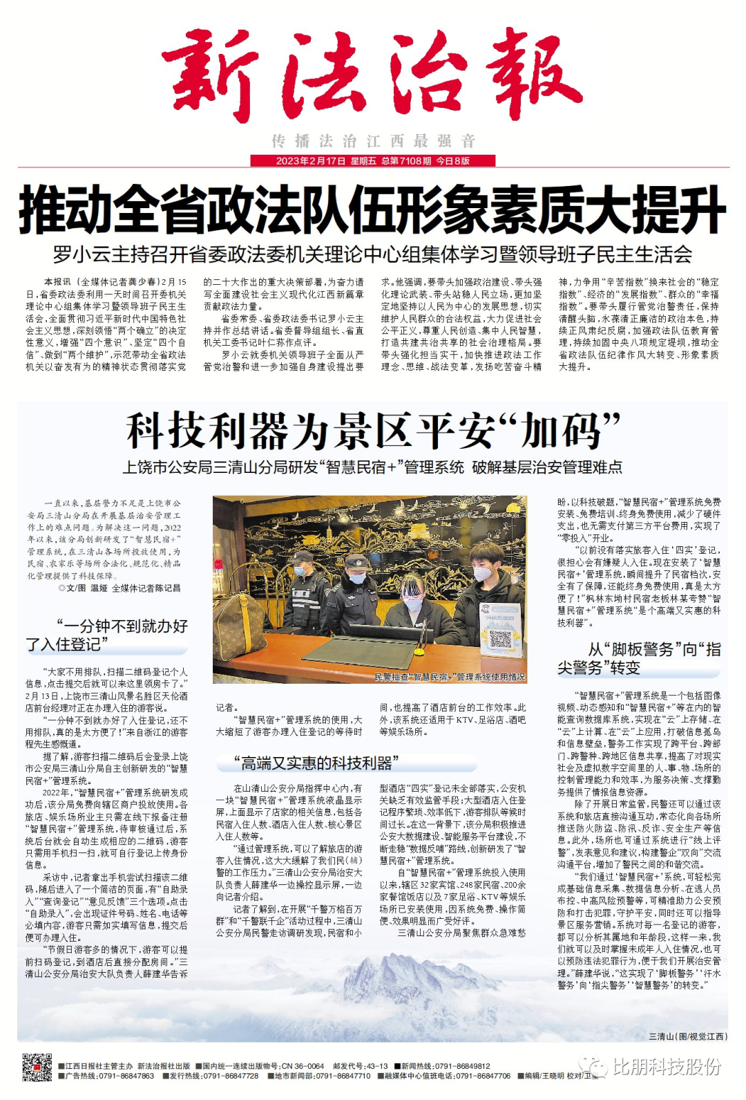一直以来,基层警力不足是上饶市公安局三清山分局在开展基层治安管理工作上的难点问题。为解决这一问题,2022年以来,该分局携手比朋科技,推出民宿实名信息管理系统,创新研发了“智慧民宿+”管理系统。