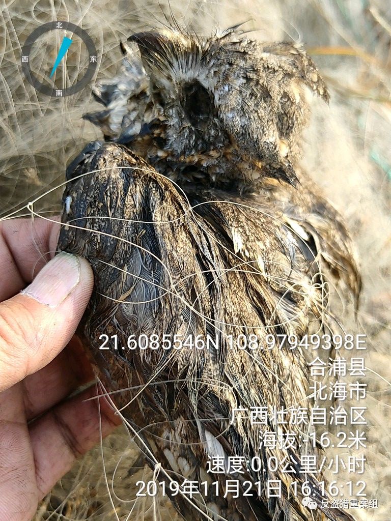 还发现挂网惨死的猫头鹰(疑似红角鸮)。