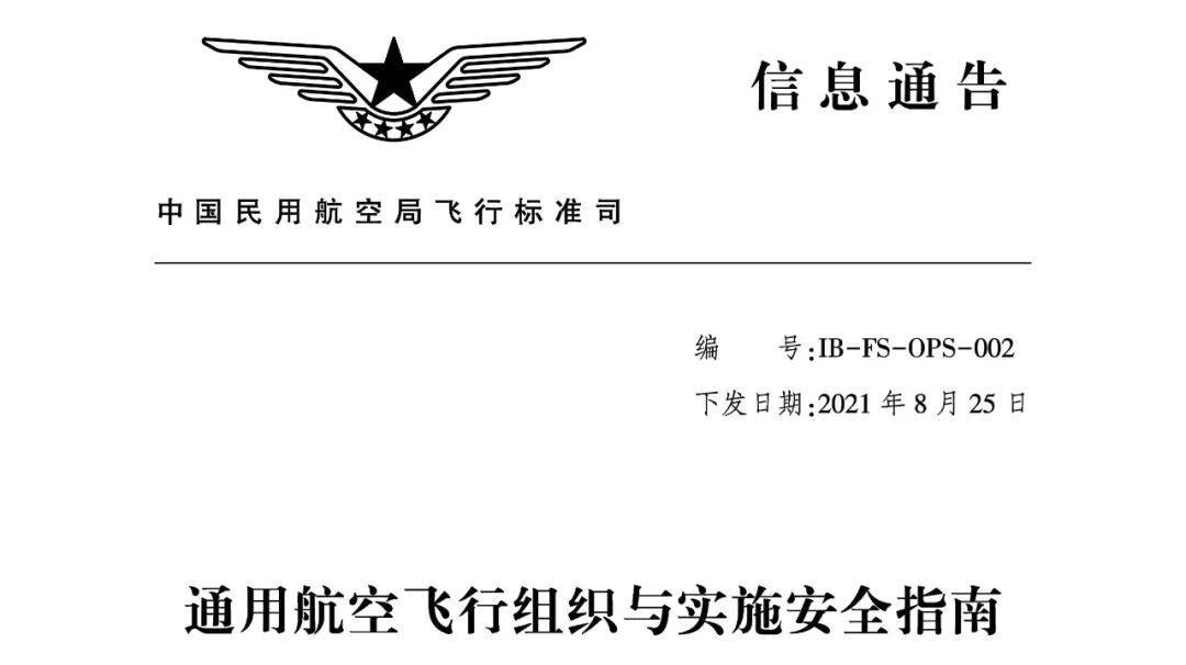 8月31日,民航局飞标司日前发布《通用航空飞行组织与实施安全指南》信息通告。