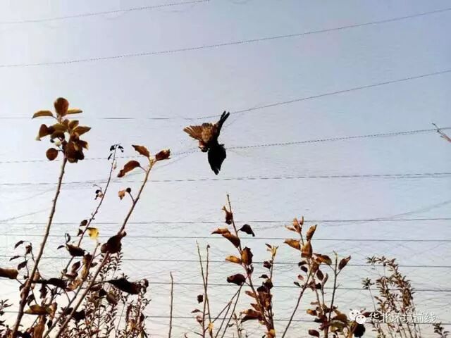 为了打击这些捕猎野生鸟类的情况,“华北环境前线”的志愿者会不定期的前往可能会架网的地方进行巡护,同时随身携带剪刀和手套等装备,如果发现有人架设捕鸟网,就会劝阻对方拆除,如果对方不听,或者找不到架网人,志愿者就会向森林公安汇报,得到支持后将捕鸟网拆除。