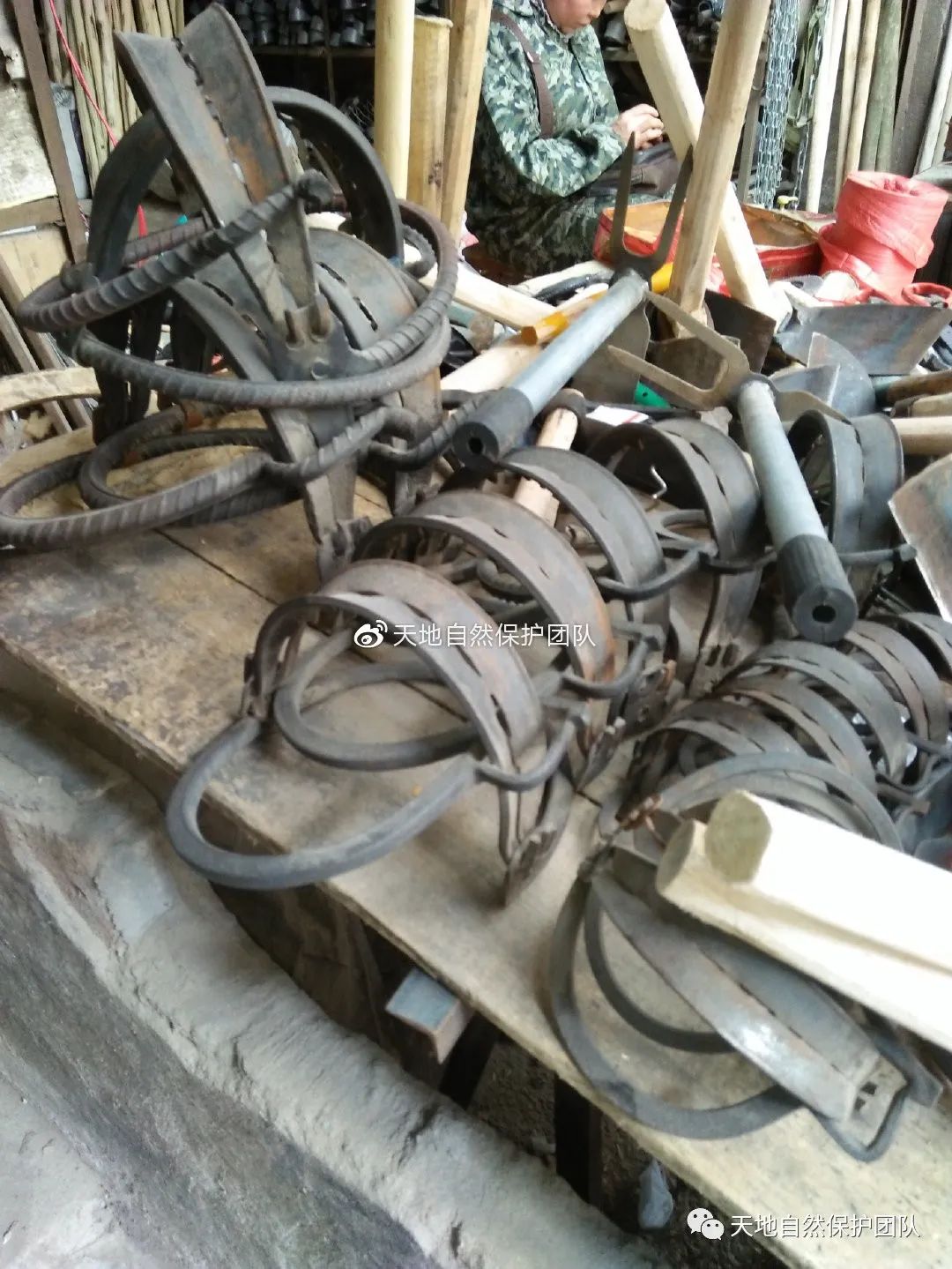 而盗猎工具的产量与销量多如牛毛,不计其数!有些盗猎重灾区,一座山上的兽夹数量比野生动物还多,以至于布设兽夹的盗猎者都搞不清到底安置了多少个又放在哪里!造成有些动物被捕猎器猎获后变成干尸一直无人收取!