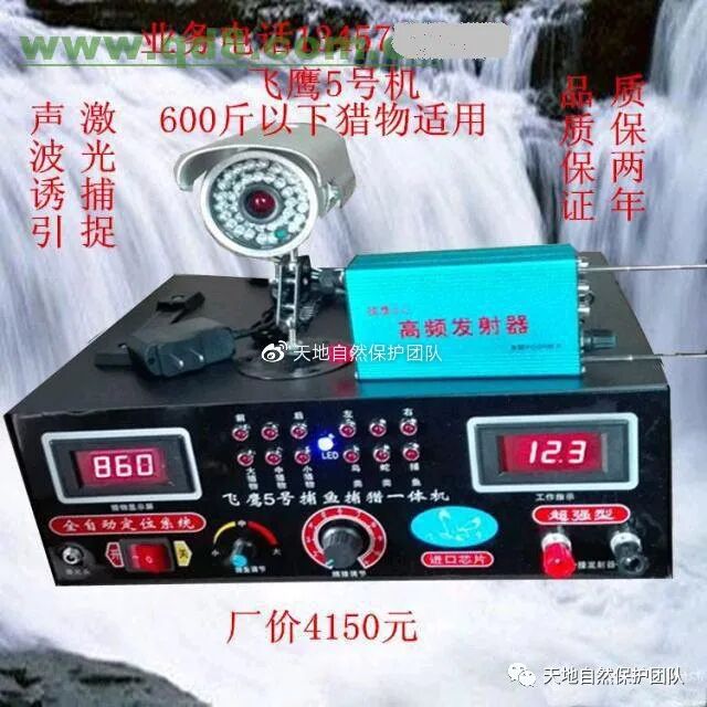 目前市面上主要的猎捕工具有1、高压带电猎捕机 2、带电(逆变)捕鱼器 3、捕兽夹 4、捕鸟网 5、捕兽笼 6、弹弓 7、弓弩 8、猎枪 9、钢丝套 10、毒饵11、捕蛇钳 12、绝户网 13、地笼网 14、粘鸟胶 等