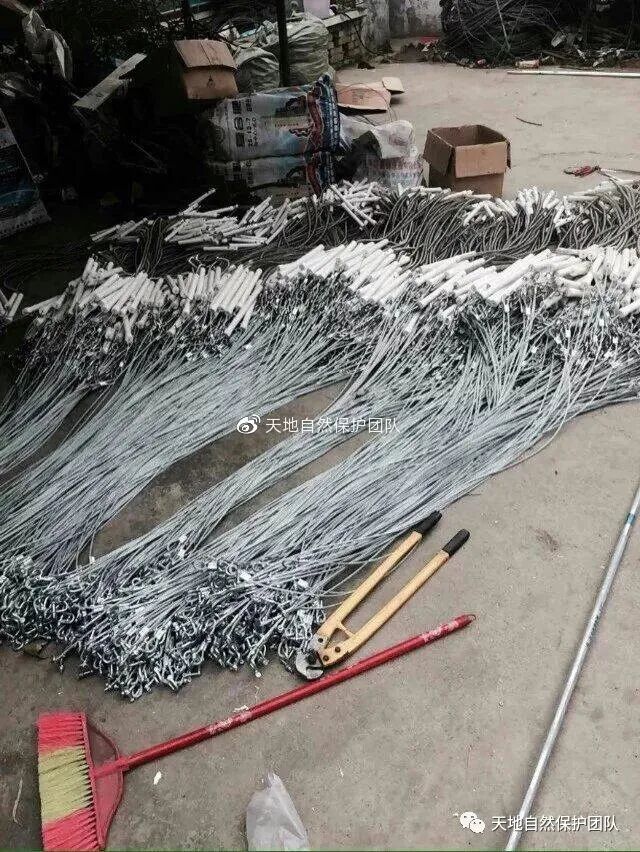 志愿者收缴的大量简易钢丝套 图片来源网络