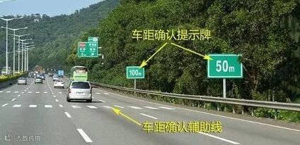 在高速公路上行驶速度很快,在驾驶的时候肉眼确实很难判断本车与前车的准确车距。因此,高速公路上每隔一段路程,就会设置一组车距确认标志、标线,驾驶人可通过观察这些设施确定和保持安全车距。