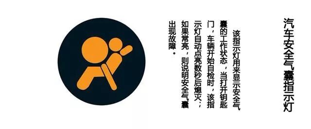 气囊故障灯这个在一些国产车上很常见,也很容易辨别,是一个坐着的小人前方鼓出一个球的形状。如果此故障出现了报警,一定及时进行维修,否则气囊可能会在驾驶过程中途观弹出,从而对驾驶着或者乘客造成较大的损害。