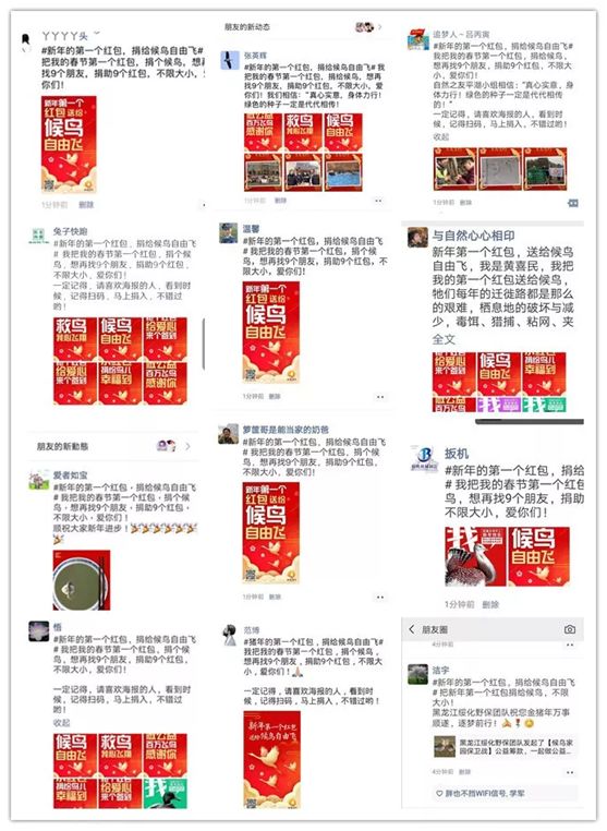 其实这不是「护鸟侠」的第一次集结,在2019年离除夕还有2天时,我们召唤每一位,一直在后方默默支持我们的朋友,秒变护鸟侠。大家相约猪年的第一天,为天下鸟儿代言,104张精美海报,飞满春节的朋友圈。那一次集结,共有23个伙伴团队联合劝募,7102人参与,一起为一线护鸟人筹集到110161.14元。