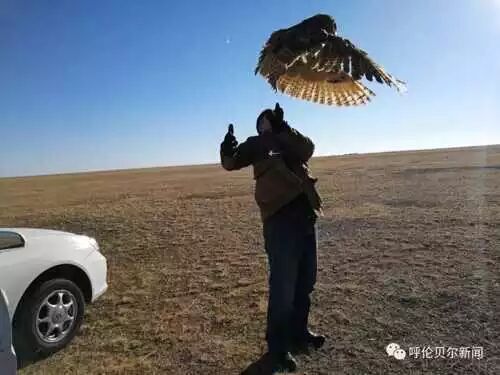 2018年10月16日 “第一次野化训练挺成功,继续加油!”随着伤口的愈合和体力的恢复,雕鸮的野性也渐渐恢复。为了让它早日回到大自然,并且有足够的生存能力,双龙经常带着雕鸮到周边草原上练习飞翔,野化训练。天气好时,双龙还去草原上捕鼠,拿回来给雕鸮“玩儿”。