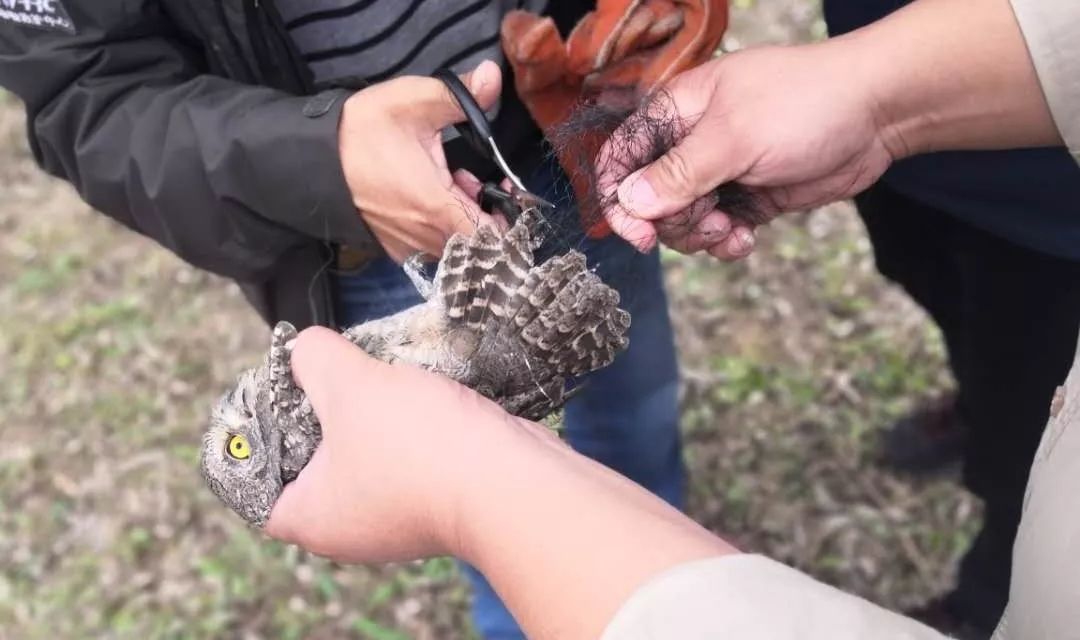 *现场逮捕一名盗猎者。此人在其村西侧的树林及一个有围墙的空地林场内架设一共前后架设了3张捕鸟网,在网上和其居所内发现并解救涉及黄眉柳莺、黄雀、小鹀、红角鸮、灰喜鹊、绣眼鸟等40余只。