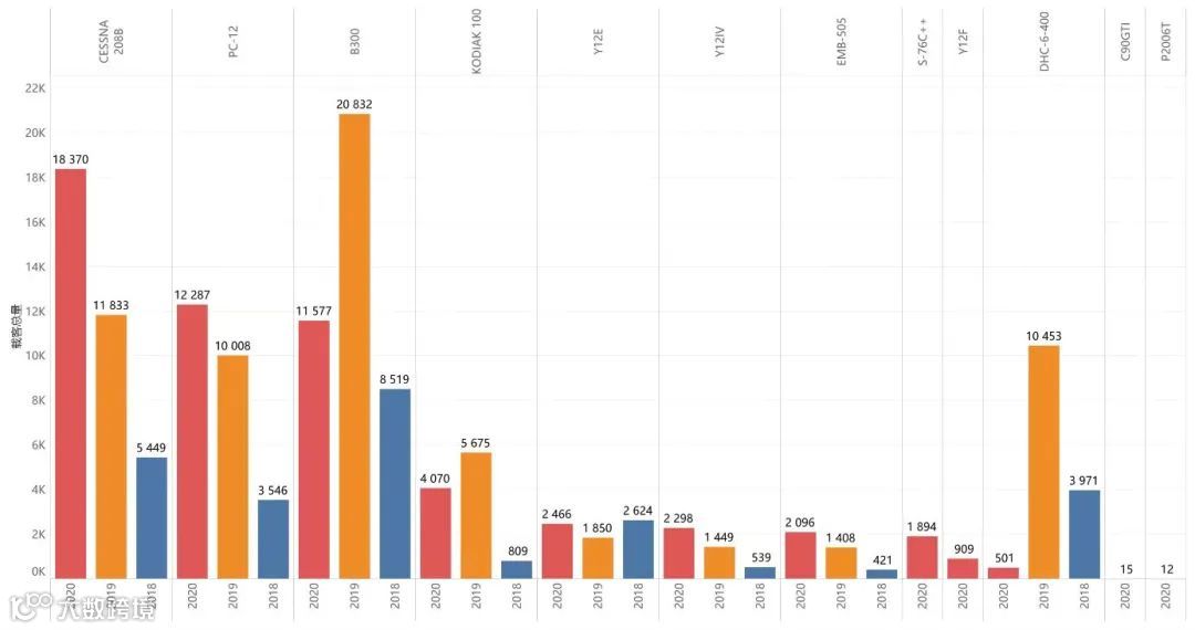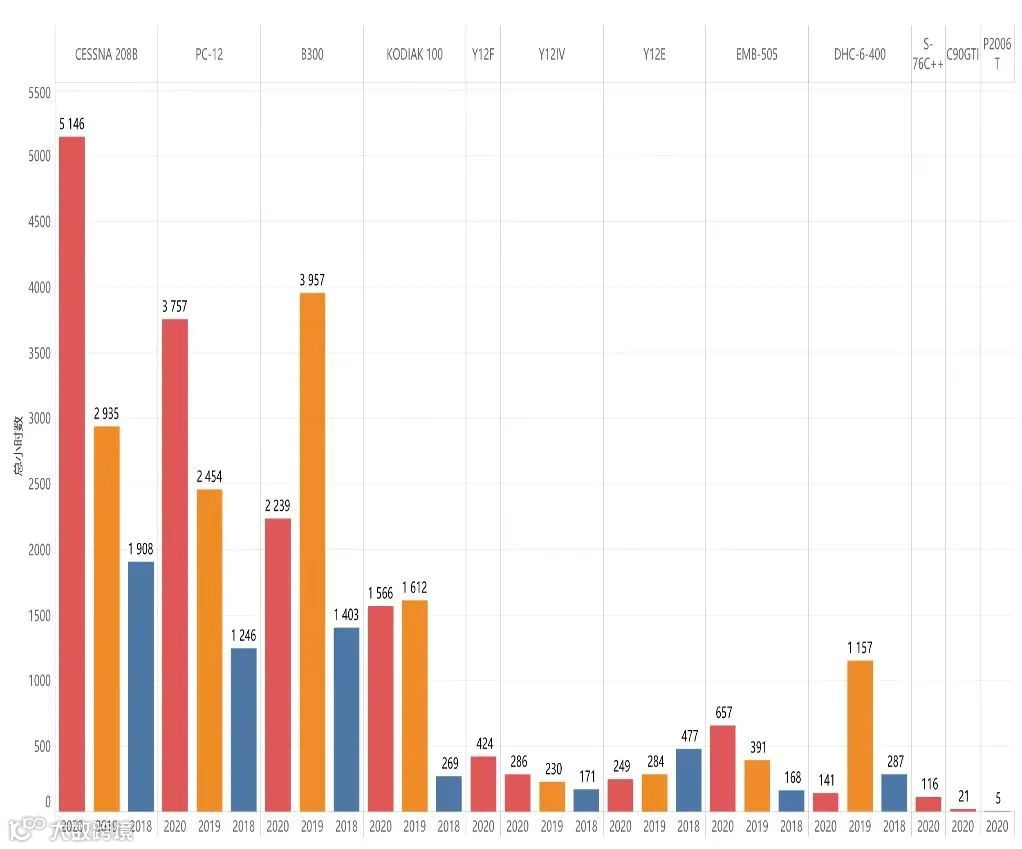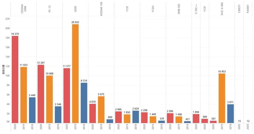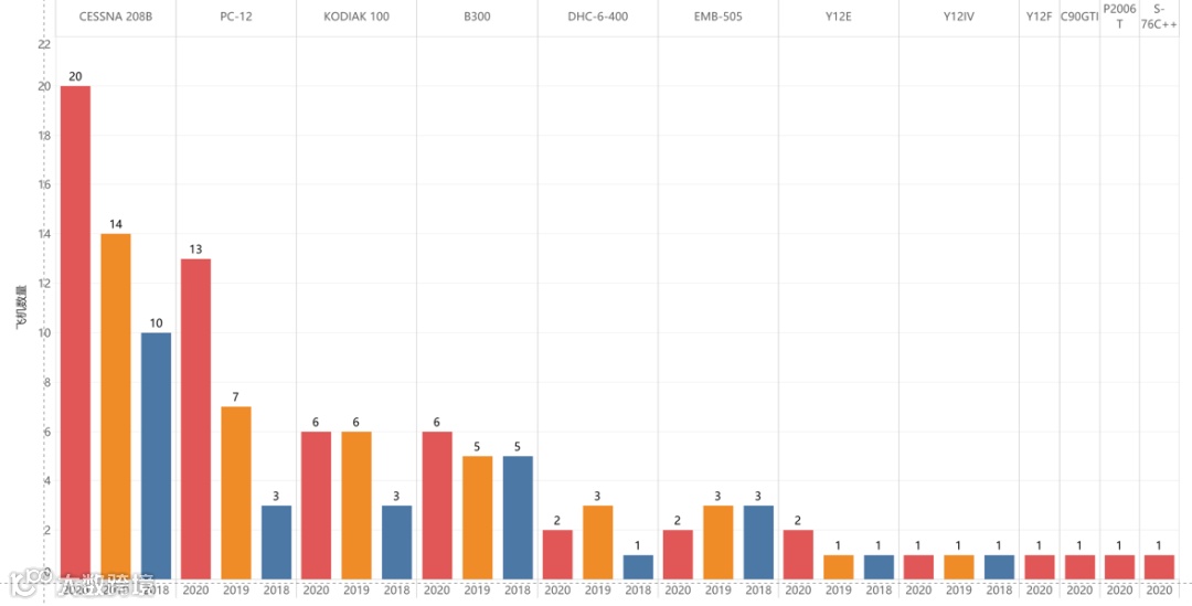 CESSNA 208B和PC-12两款机型数量的增长速度明显加快,高于所有机型平均增长率。