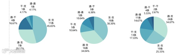 2020年,通-支类型的航线数量超过支-支,成为最多的航线类型,占航线总数量34.67%,通用机场的作用愈发明显。2020年,首次开通了干-干类型通用航空短途运输航线,至此,实现了六种航线类型的全覆盖。